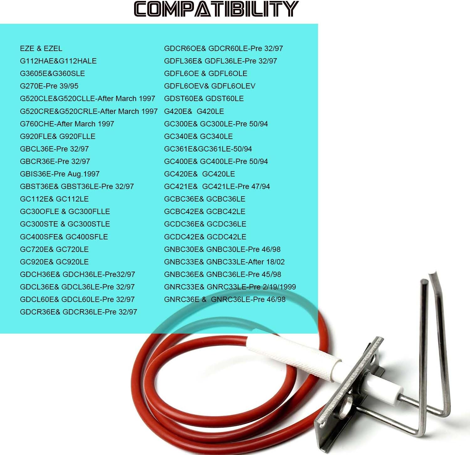 COMPATIBILITY: The fireplace ignitor Compatible with Heatilator Natural Gas (NG) and Propane (LP) Models:EZE, EZEL, G112HAE, G112HALE, G360SE, G360SLE, G270E – Pre 39/95, G520CLE, G520CLLE – After March 1997, G520CRE, G520CRLE – After March 1997, etc