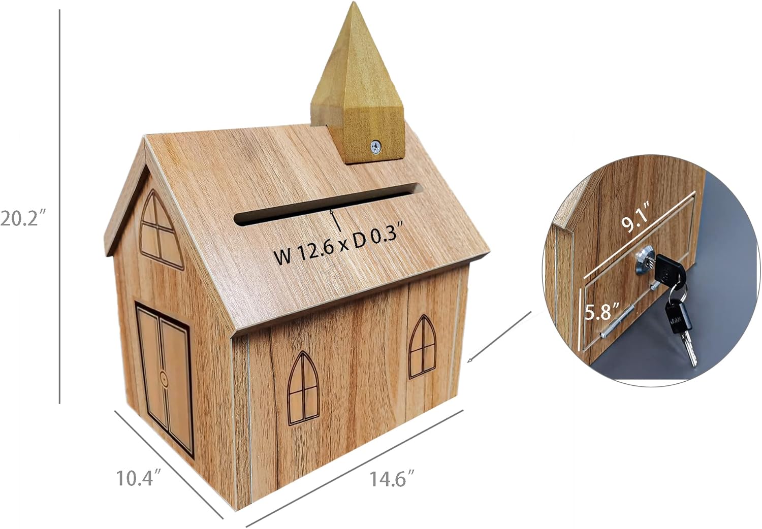 FixtureDisplays Engineered Wood Tithes Offering Donation Box with Christian Cross, Church, Collection Boxes, Charity Boxes 14.5 X 10.4 X 20.3", Anti-Fishing, Requires Simply Assembly 21397-KD-NPF