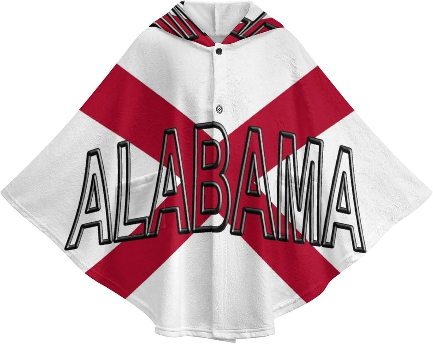 The wearable blanket is made of soft and comfortable flannel fabric, which makes you feel warm in spring, autumn and winter. It has a cape-like shape, a button closure for easy wearing and taking off, and two pockets.