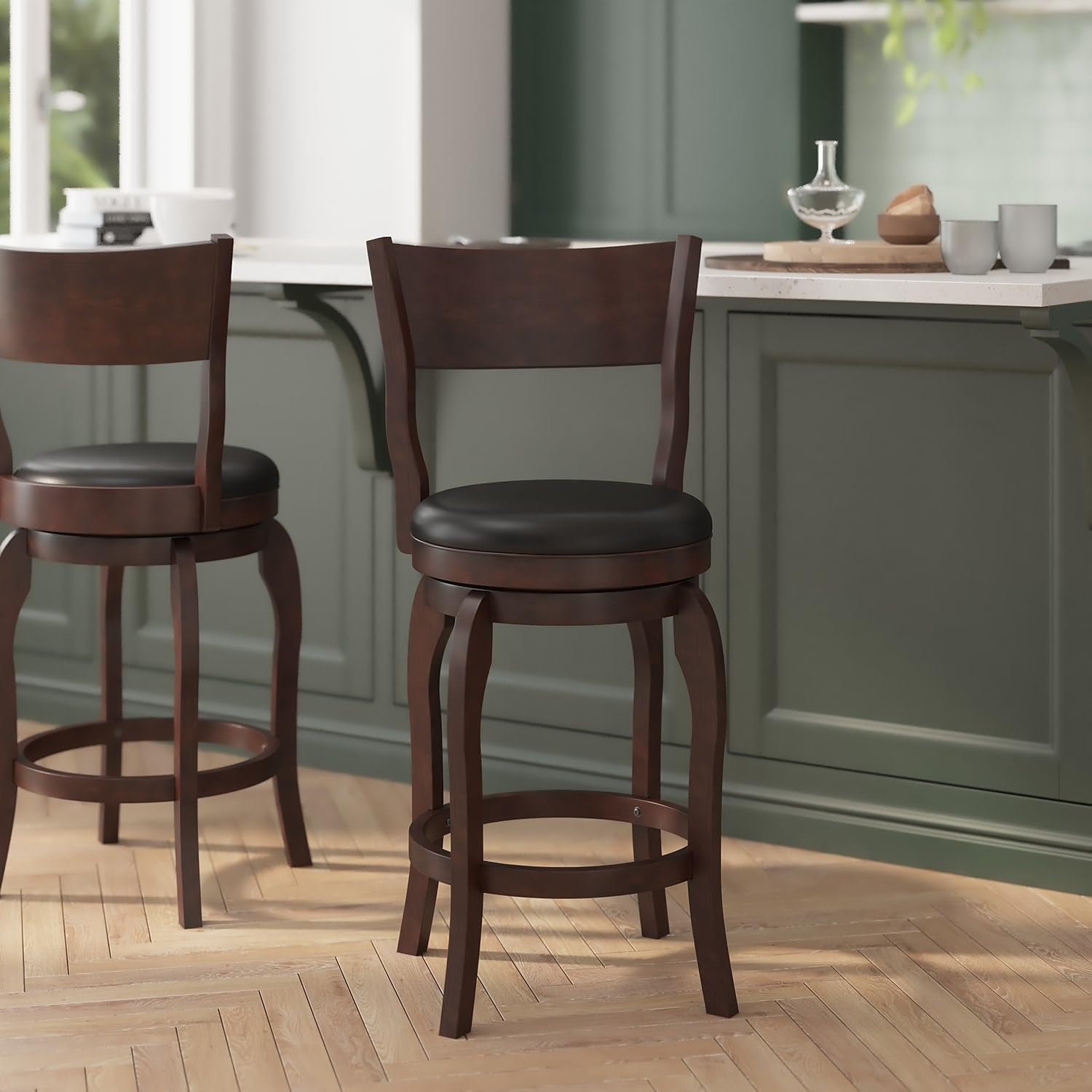 | Item Type Name | Nichola Commercial Grade Classic Open Back Swivel Counter Height Pub Barstool with Bowed Wooden Frame and Padded, Uphosltered Seat |