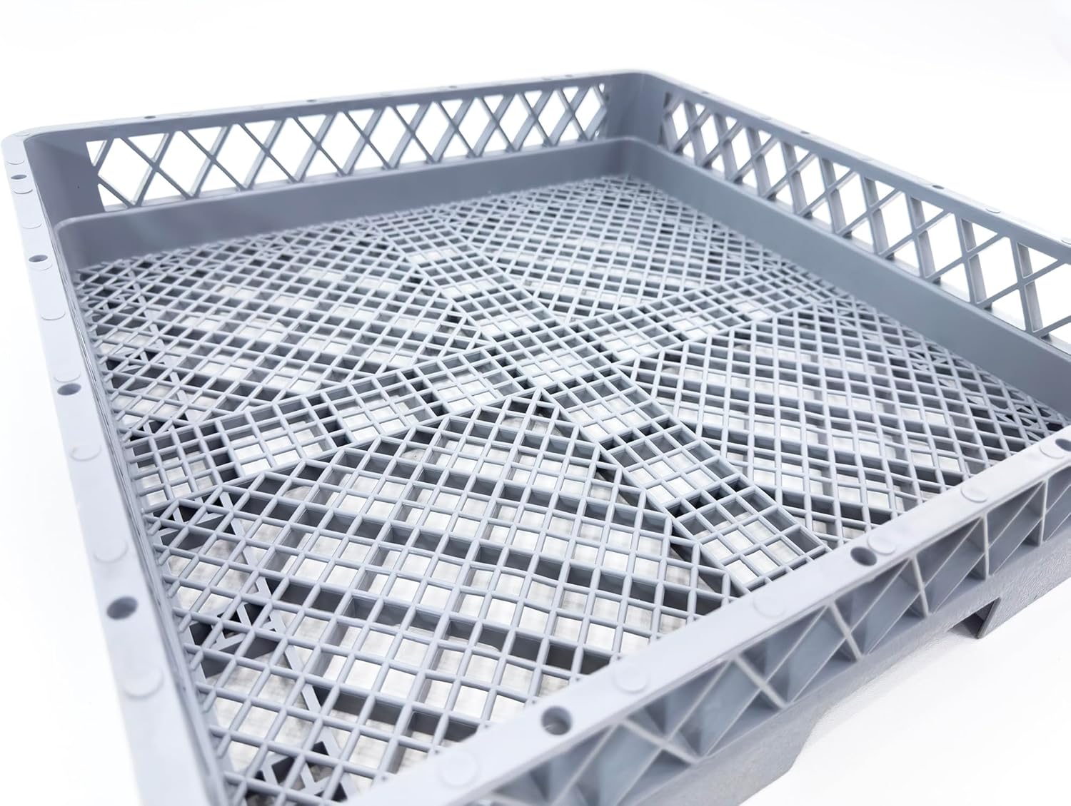 Large Area: Boasting a 19 1/4" x 19 1/4" x 4" large storage area, this full-size rack easily holds all of your flatware for multiple sprays and high-pressure dishwashers. This design also allows for superior cleaning, rinsing, and drying of your mixing bowls and other uniquely shaped dishware.