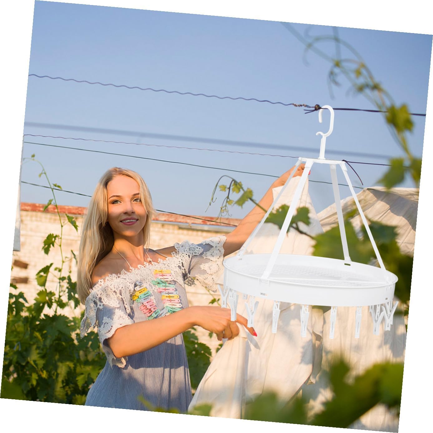 Package List 1 18 x clips 4 x hanging lanyards Characteristics -Color: White -Product Info:Drying rack -Size: 50.00X50.00X40.00cm/19.65X19.65X15.72 in. -Material: PP - You won't face short of hangers and take less space by using this hanger underwear drying rack. - Great handy item to organize your closet, the possibilities are endless! underwear drying hanger - The clips of the hanger are perfectly spaced to efficiently maximize air flow towels drying rack. - The lightweight design is perfect for camping, outdoor, business trip, travel or vacation towels drying hanger. - Suitable to hold and dry socks, bras, cloth diapers, towel, underwear, scarf or other small delicate items clothes drying hanger.Goods Informationunderwear drying hook Multi-functional hanger can be used in various occasions, such as small clothes, clothes, underwear, masks, bras, shorts, handkerchiefs, towels, gloves, socks, scarves, hats, ties, cloth diapers, etc.clothes drying hanger It is easy to hanging on laundry room, wardrobe, closet, shower curtain rod, outdoor clothesline, etc