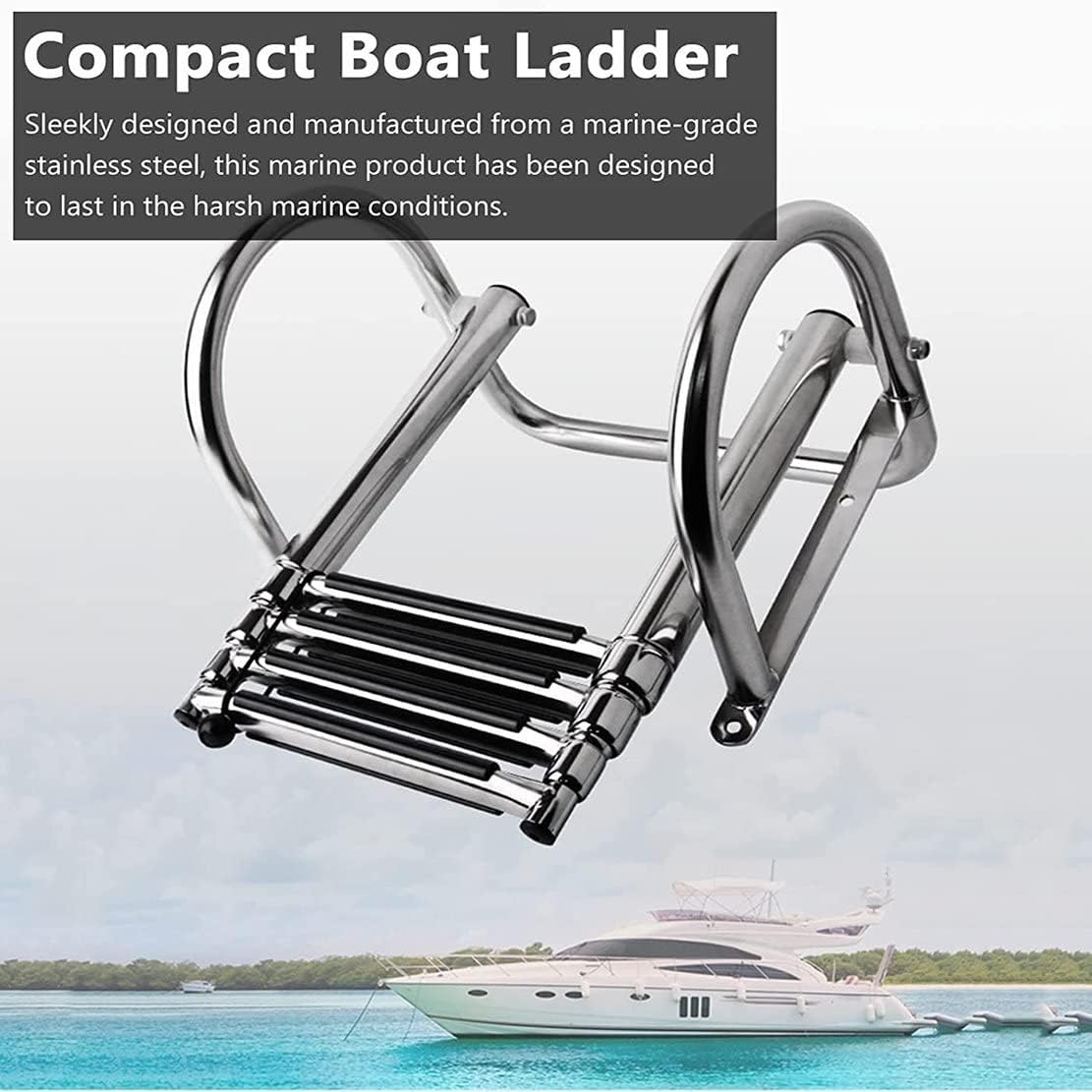 This telescopic boat ladder is designed and manufactured from high quality stainless steel to withstand harsh sea conditions. Depending on the installation, this telescopic boat ladder can be bolted to a horizontal platform such as the bottom of a boat or a side rail. Specification: Product: Telescopic Boat Ladder Material: 316 Stainless Steel Surface Treatment: Polished Extended Length: 116cm/45.67" Folded Height: 42.3cm/16.65" Width (outside bracket): 42 cm / 16.5" Payload: 200kg/440LBS Weight: 9 kg/20 lbs Feature: - Made of heavy duty welded 316 stainless steel, mirror polished for a stylish look. - Design of wide slip-proof tread is intended for maximum safety and comfort boarding. - Telescopic steps drops smoothly and retracts easily,store them with included cord strap when not in use. - The foldable design is perfect for small sailboats and boats and most swimming pools, marinas, pontoons. Package Contents: 1 × Boat Ladder (installation accessories) Safety Guildlines: 1.No jumping or diving! 2.Do not use when motor is running! 3.Only one person on ladder at a time! 4.Check all steps and hardware before using! If you have any questions, please feel free to contact us, we will reply and resolve within 24 hours.