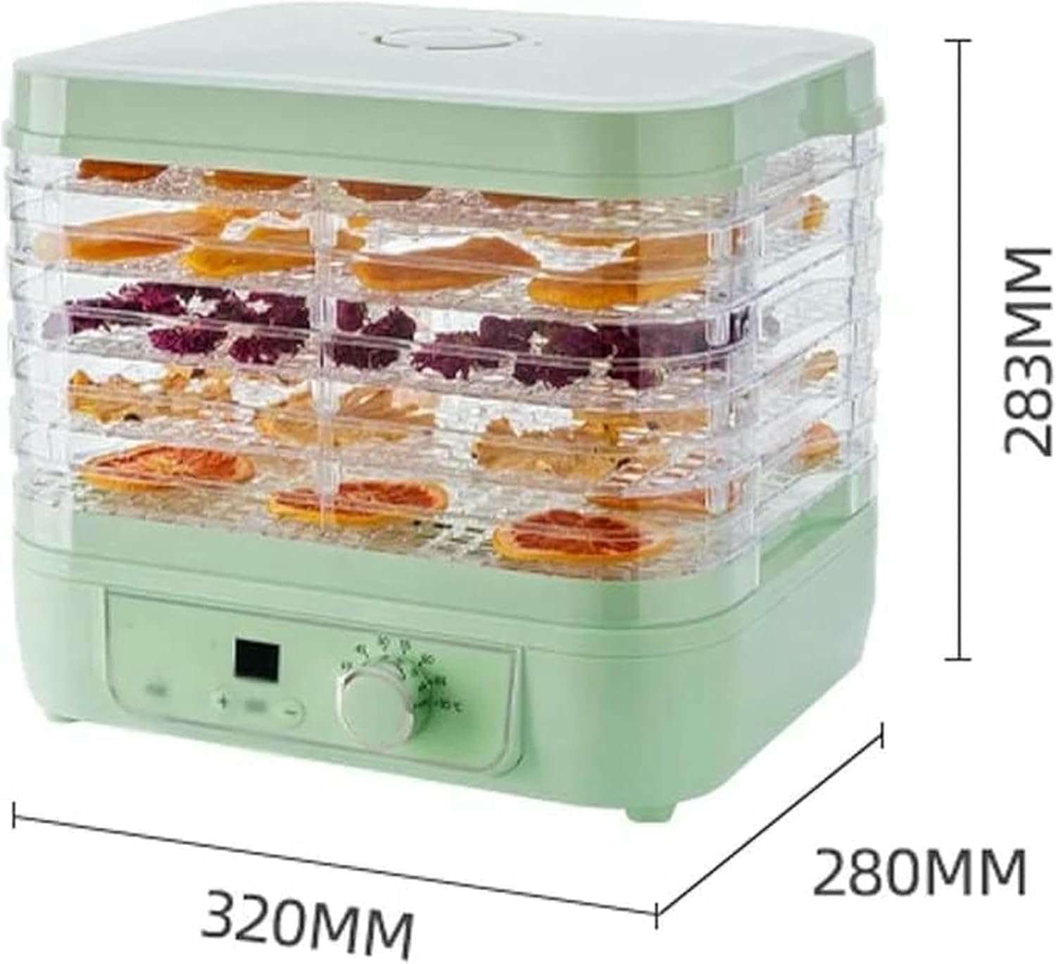 Due to the different lighting effects and environments, screen bright adjustments, etc., the color of the real article can be slightly different, consult the real article.As for size, allow a difference of 1 to 3 cm due to manual measurement, thanks for your understanding!A quick, comfortable and economical way to create natural, healthy and delicious snacks with an elegant appearance to polish your kitchen.Use the dryer to keep food full of flavor and nutrition.If you like natural and healthy snacks, the fruit dryer is an essential kitchen utensil for day to day.The snacks of dry fruits and vegetables that are bought in the store are expensive, but this dryer allows you to do your own health at a very low cost.Nutritious foodsUsing this dryer you can keep food: it contains up to 97.7% of vitamins and minerals that can improve the conservation of various foods.The best complement to a balanced diet is adequate , adolescents, middle -aged people and older people.Wild fruits dry vegetables Flowers Tea meat fish refreshing pastry or homemade foodnote:1. Packaging included: 1 * Fruit dryer2. Fixed all product specifications manually.If the error is 2 to 5 cm, it is within the normal range.Please understand3. Do not wash the fruit dryer in the dishwasher or dip in water or in any other liquid.