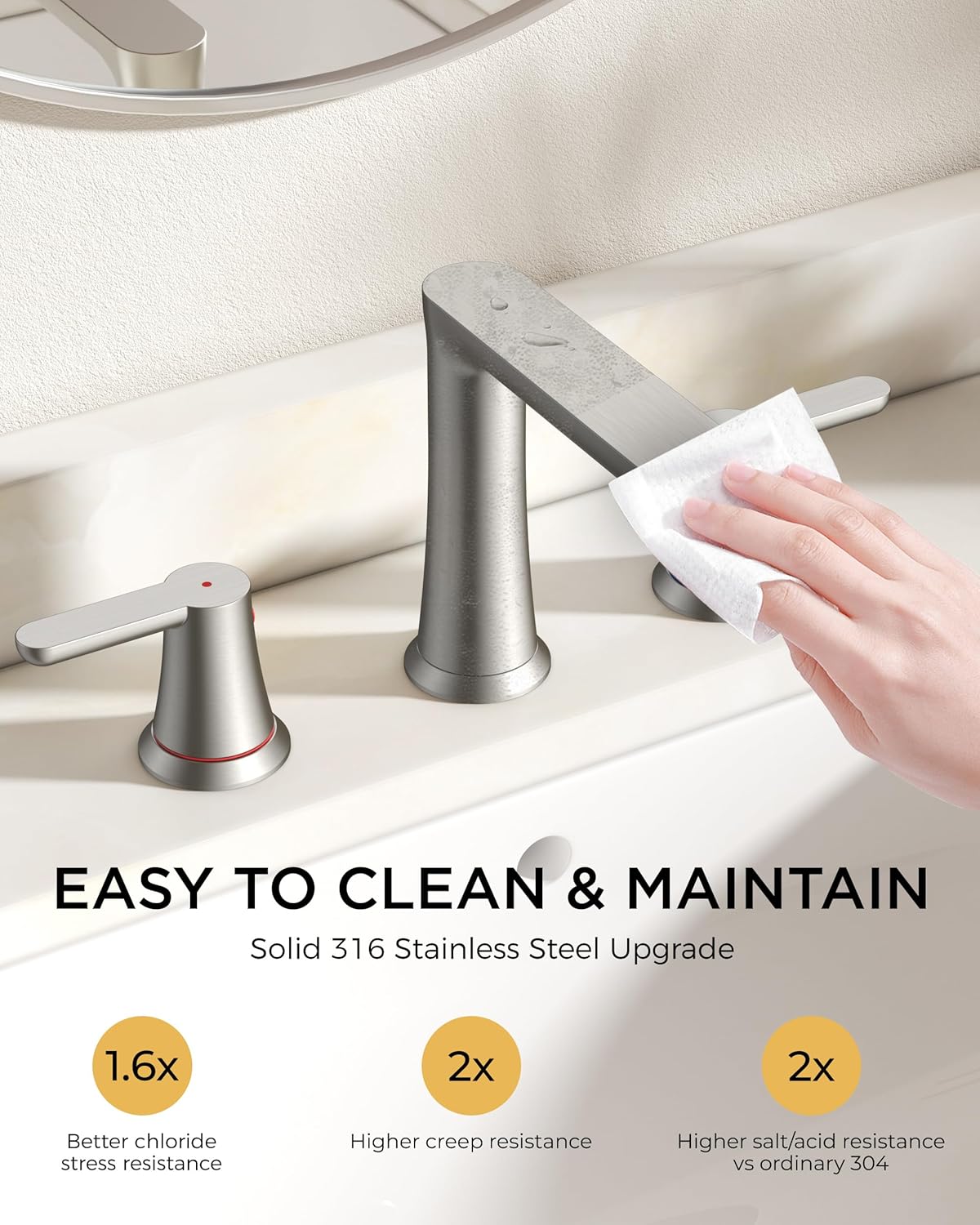 | Included Components | 1.2GPM Spare Aerator, 24'' CUPC Supply Lines, 3 Pieces Bathroom Faucet, Installation Hardware, Metal Pop-up Drain |