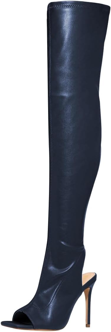 FOWT Women Square Open Toe Over The Knee High Boots Stiletto High Heel Long Boots Sexy Backless Party Fashion Shoes Size 4-16 US