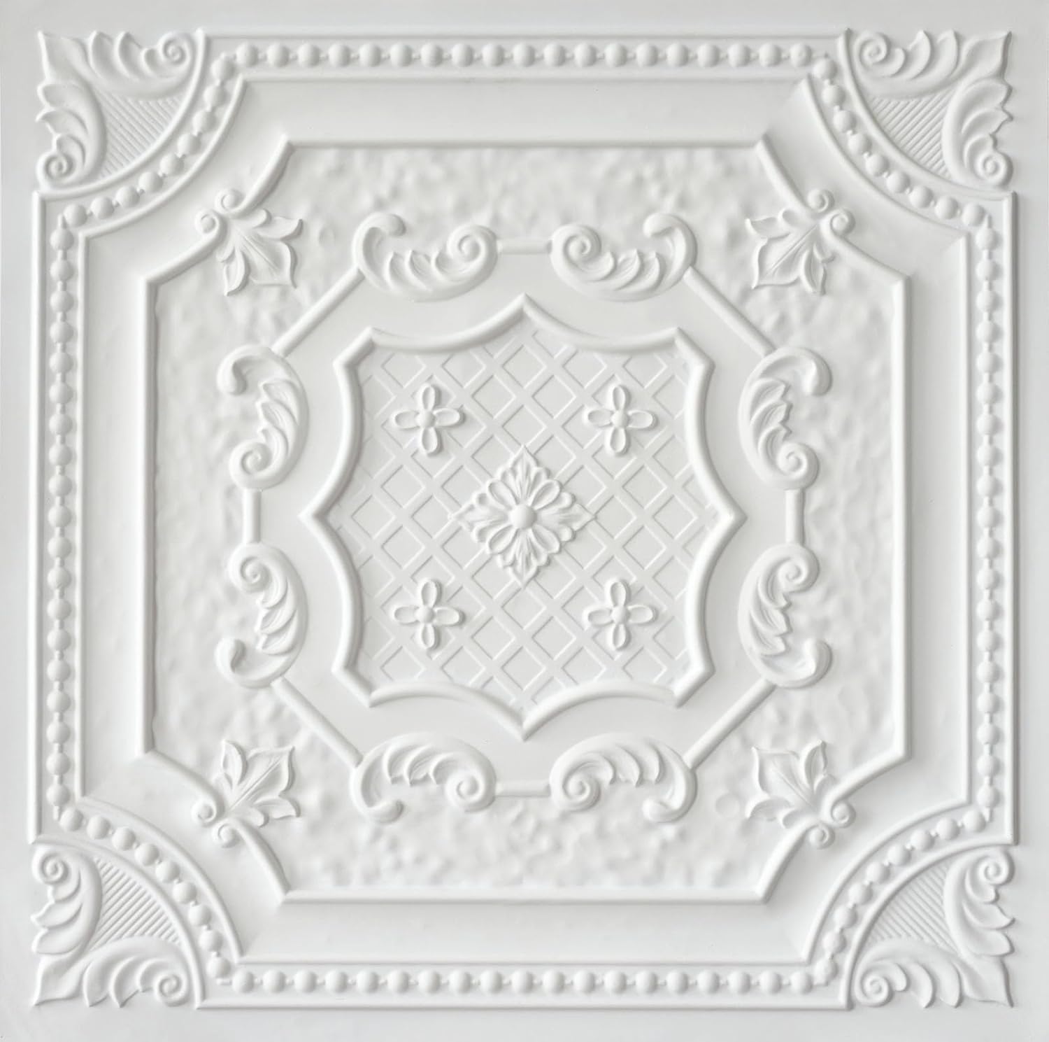 Elizabethan Shield is a part of our From Plain To Beautiful In Hours collection, this one comes in this lovely finish and can be used for commercial or residential projects in standard 15/16” grid systems or glued over most stable ceiling surfaces.