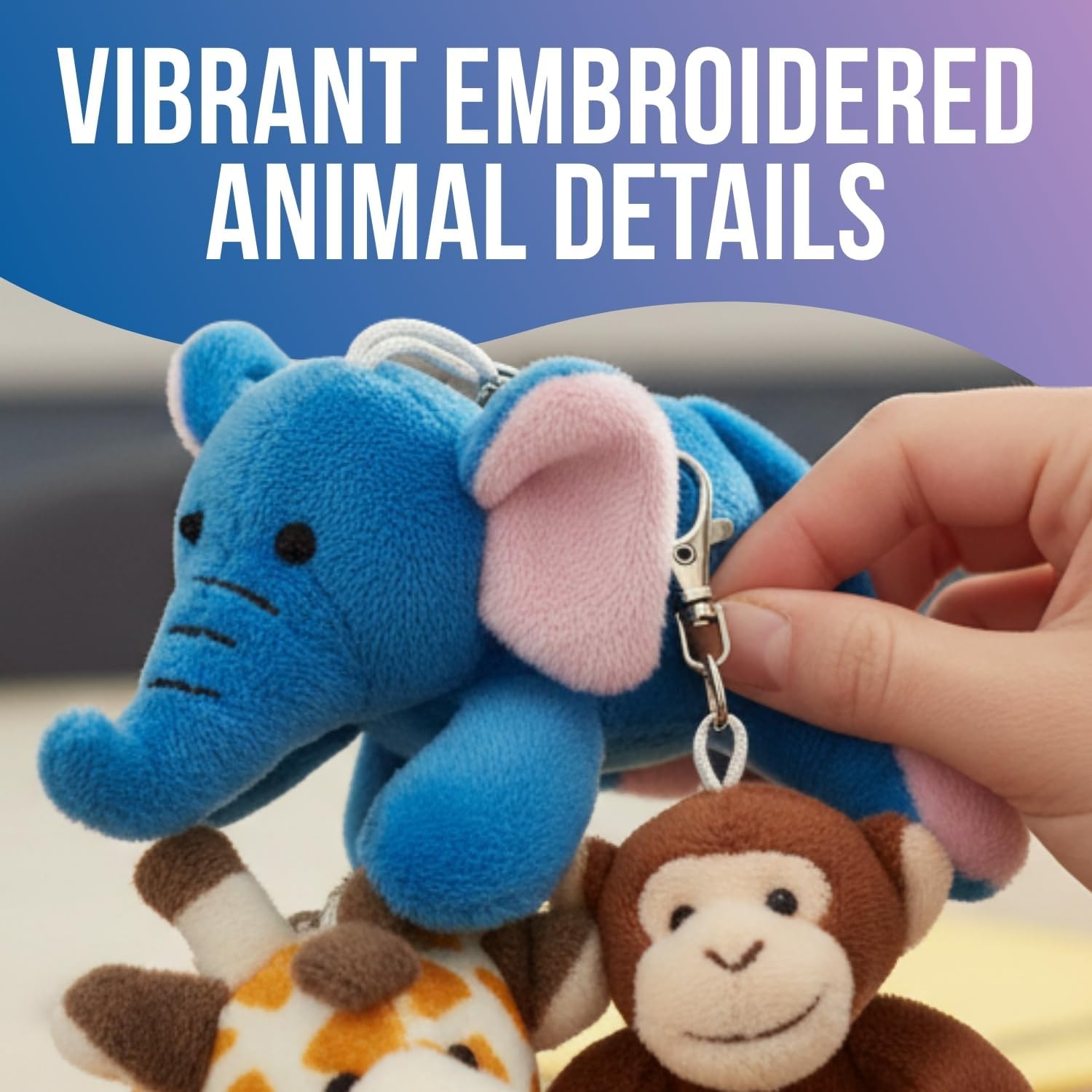Bring a touch of the countryside to your next party or event with this mini zoo animal stuffed characters keychain assortment. This pack of 12 adorable plush animals makes the perfect addition to zoo or animal-themed birthday party favors, classroom rewards, or game prizes. Each keychain features a soft, huggable 4 3/4" plush zoo animal attached to a sturdy metal ring with a clip, making it easy to add charm to backpacks, keys, or gift bags. Perfect for both kids and adults, these keychains are a fun and functional way to spread joy and create memorable keepsakes. Affordable, durable, and irresistibly cute, this set is sure to delight your guests and leave them smiling.