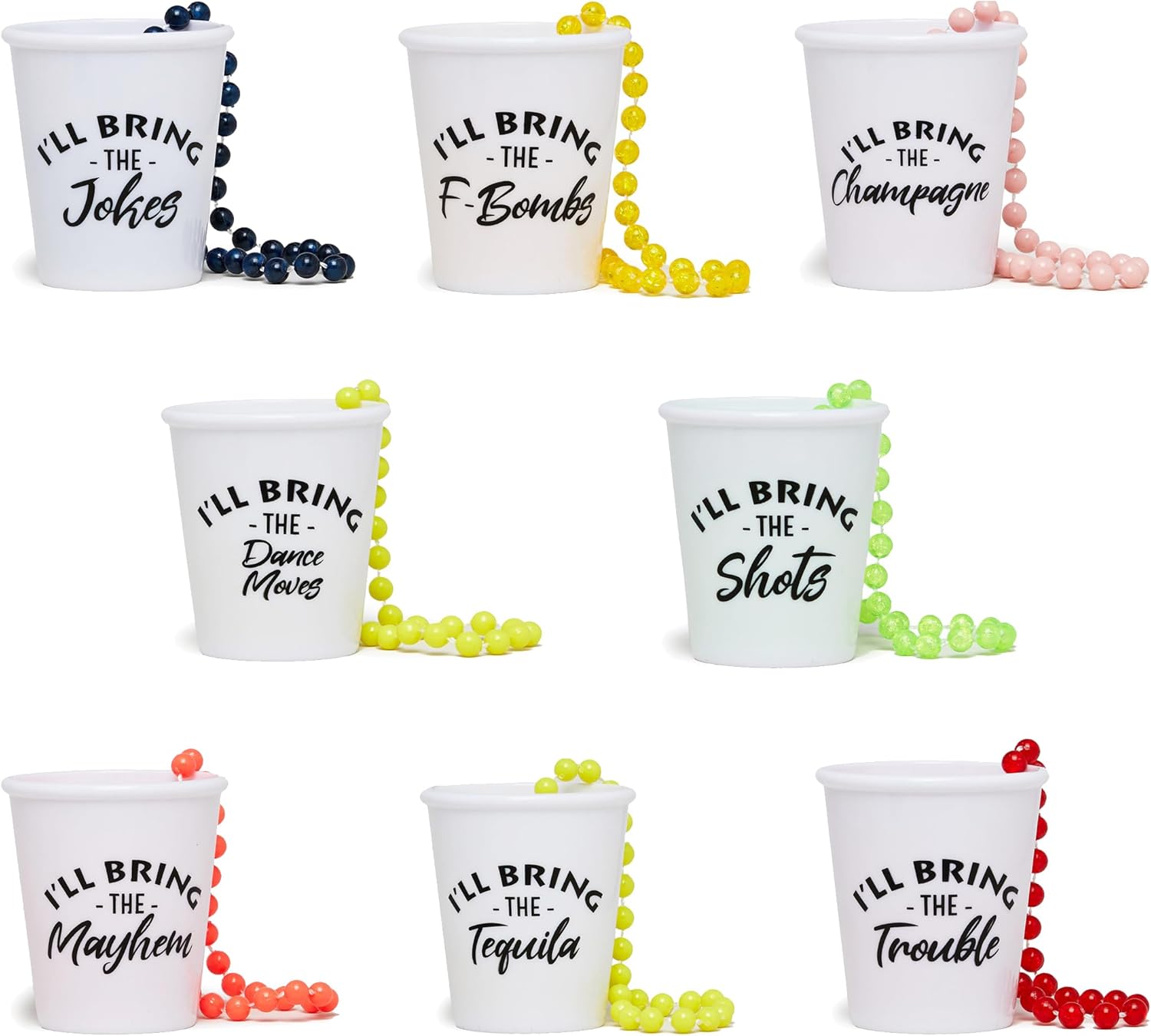 Introducing our shatterproof, non-fragile plastic shot glass necklaces - the perfect addition to any bachelor or bachelorette party or adult-themed event! These miniature cups are a popular choice for because they are convenient, versatile, and budget-friendly.