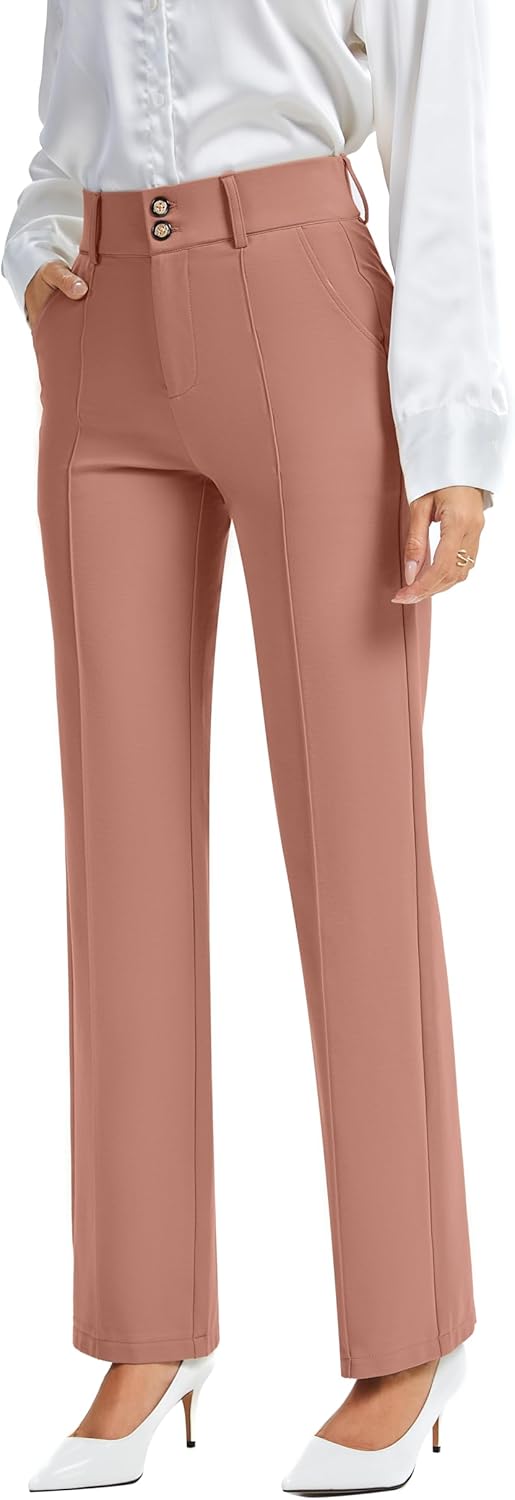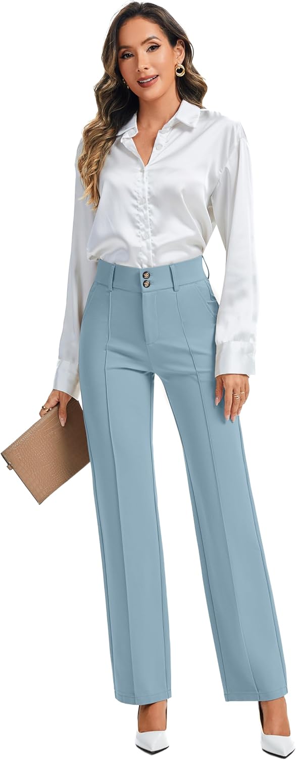 FUNYYZO Dress Pants Women's Stretchy Straight Leg Button Slacks Trousers with Pockets Casual Pants