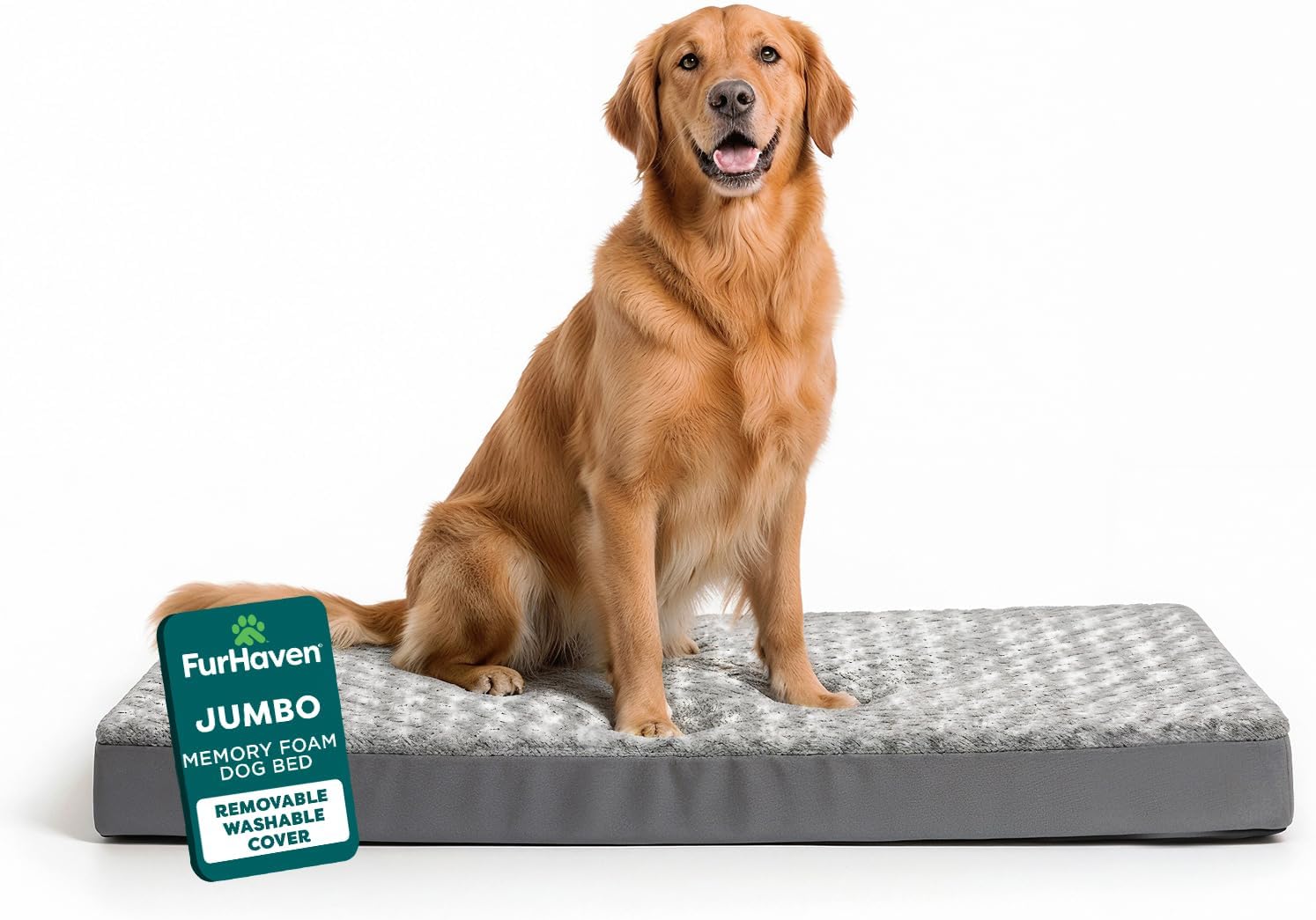 Your pet will love the rest they get on a Furhaven Ultra Plush Curly Faux Fur & Suede Mattress Dog Bed. Memory foam is designed to work with your dog's weight and contour to their body providing better overall support and relief from painful muscles and joint discomfort. Warm and snuggly, your pet will benefit from a better, longer and more restful sleep. Better rest for your pet can lead to improved health and energy.Low profile, step-on design for easy access by older or disabled pets. Easy to clean. Cover care: Remove from core before washing (see hang tag and/or seam label for care instructions). Foam care: Memory foam is highly absorbent. Spot clean with mild soap or enzyme-based cleaning spray. Rinse but DO NOT SOAK OR SUBMERGE. Press out moisture with a dry towel and air dry. A fan may be used to speed drying. Do not wring or place in machine dryer. Dry completely before use. Not for unsupervised use by animals with destructive chewing behavior.