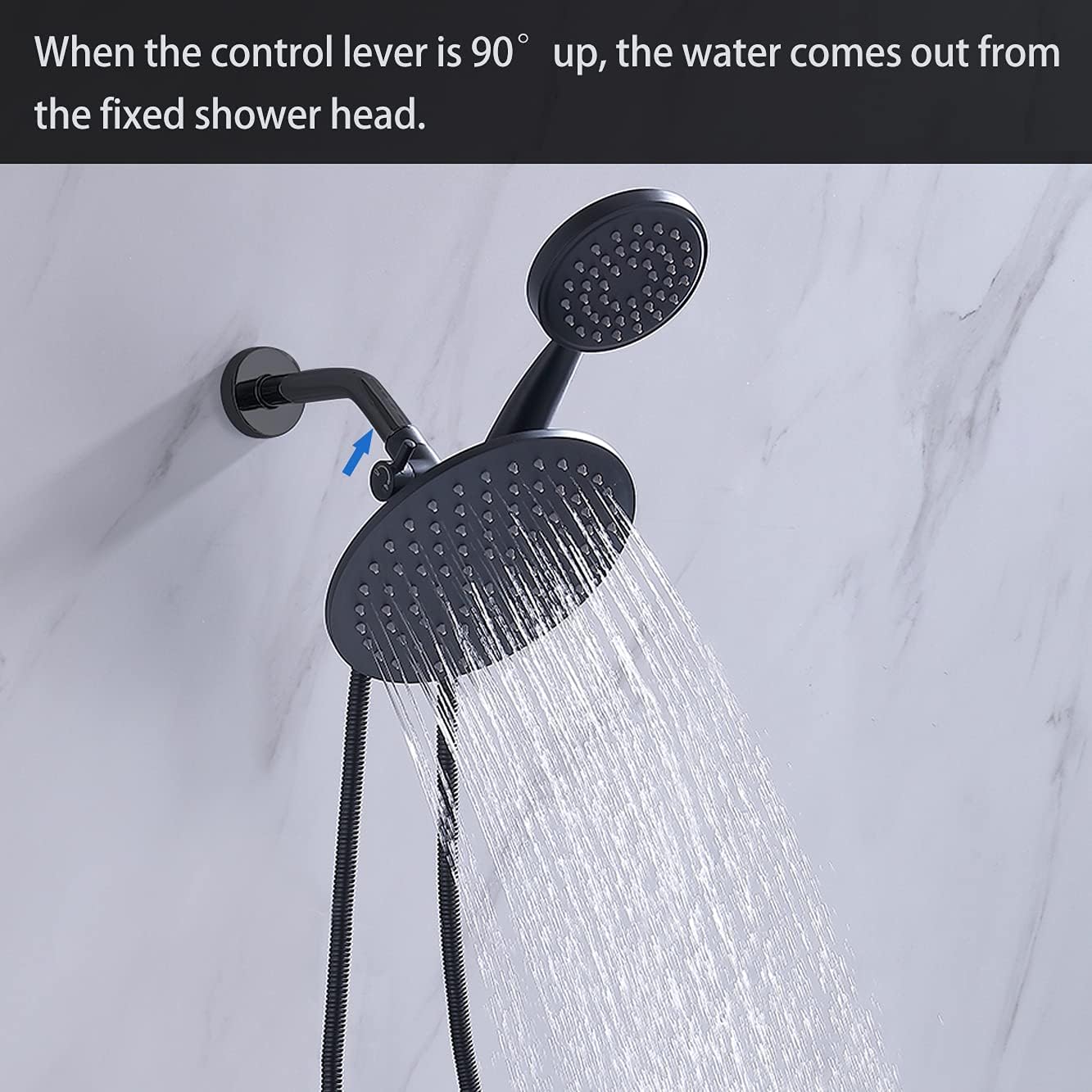 This is an all-metal hand shower set that includes a 3-function handheld shower wand, comes with a handheld holder for controlling the on/off switch of the wand and a 70-inch tangle-proof stainless steel hose. All made of metal for strength and durability.The 3-function handheld shower wand has a push-pull switch for easier one-handed operation. The three modes are massage mode, spray mode, and mix mode. Massage mode can be good for you to relax your tight muscles.The handheld bracket, which can control the handheld shower bar to turn on or off individually, makes it convenient for you to pause the handheld shower while applying soap or bathing children or pets, which is a unique design in the market. At the same time, the holder can adjust the angle of the hand shower wand.The stainless steel hose, the size is 70 inches, can be stretched to 75 inches, made of stainless steel, will not tangle together, flexible and convenient. Convenient for you to better clean the corners of your bathroom and more comfortable to use.This 3-way diverter with holder features one 1/2" IPS water inlet and two 1/2" NPT water outlets, fitting perfectly with standard shower heads and hoses. When both outlets are used simultaneously, the water pressure is halved. Note that this diverter does not have a shut-off option. The novel multi-functional metal hand shower set is designed to bring you a diverse shower experience.