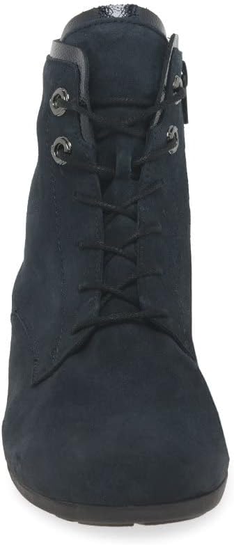 A slim wide fitting boot, the Gabor Boat is secured with zippers inside, but also a Front lacing for an optimal fit. Metallic finish is characteristic of the entire design with soft suede uppers that catch the eye.