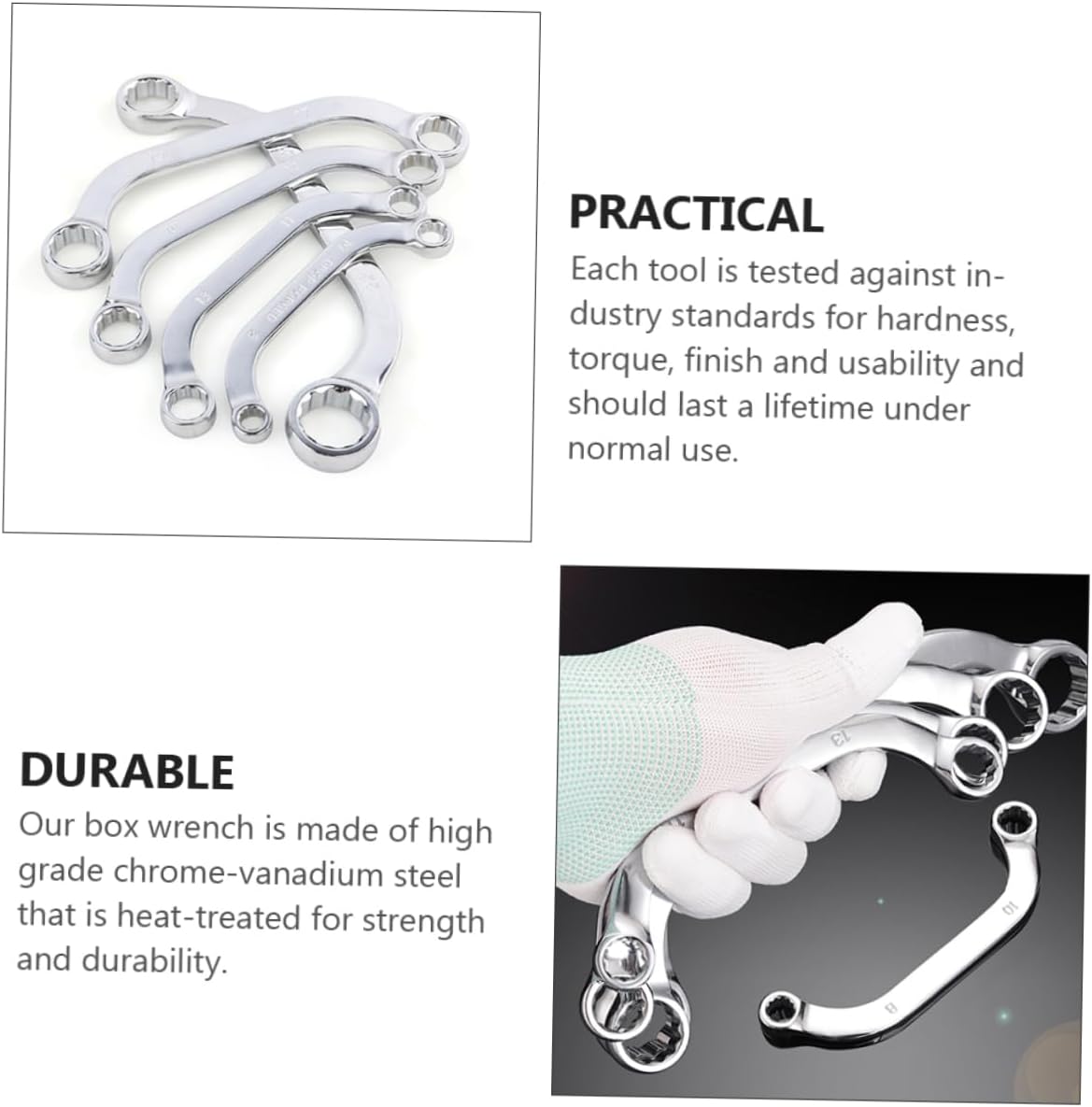 Package List 5 x wrenches Features - Size: 31.00X30.00X2.20cm/12.18X11.79X0.86 inch Metal Socket Wrench. - Color: Silver Steel Box Wrench. - Material: Chrome-vanadium steel Box Spanner. - The double box end wrench makes emergency repairs a breeze Metal Socket Spanner. - Flush mounted reversing lever allows you to change direction without removing the wrench. Save time and effort, working efficiency Steel Socket Spanner. - The excellent workmanship of our product will bring you a using experience Metal Box Spanner. - Adopts precision production to the stable characteristics and high reliability Metal Box Wrench. - The unique ultra-long design can increase the torque, which is easier and more labor-saving than other box wrenches on the market Steel Multi-functional Wrench.Goods DescriptionMulti-functional Wrench Heat treated chrome-vanadium steel and polished surface ensure durability and resistance to corrosion.Steel Socket Wrench The professional-grade, high-polish finish lets you easily wipe grease, preparing them for the next jobs at hand