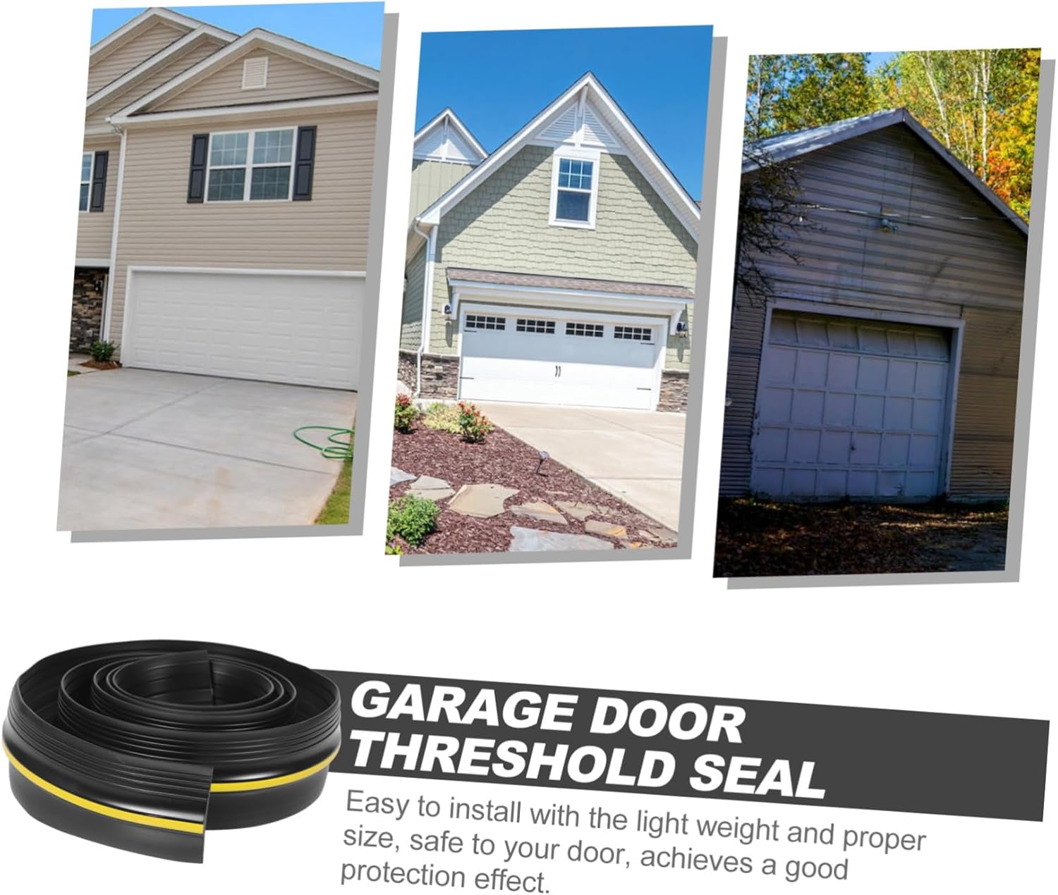 Package Include 1 x garage door seal Features -Material:Rubber garage door floor threshold seal -Color:Black garage door threshold seal -Size:300.00X9.00X1.50cm/117.90X3.54X0.59in garage water barrier -Product Info:Waterproof seal strip - This garage door seal strip is widely used on the bottom of the garage door, separating the interior and exterior of the garage threshold strip for garage door. - Simple in structure, easy to use, not easy to deform, you can use our rubber garage door threshold strip with confidence garage sealing strip. - With this door bottom seal strip for garage, can keep your garage clean, and you don’t need to sweep your garage everyday anymore door seals. - You can cut the garage door threshold strip into different length for more versatile and portable protection usage garage door seal. - Garage door bottom seal has nice and excellent seal performance, providing you a cleaner and drier garage garage door waterproofing.Goods Informationgarage door threshold seal strip Simple structure and excellent craftsmanship make this garage door floor seal strip easy to use and have excellent durability, will provide you with good service.threshold seal Crafted from rubber material, durable and practical, useful and flexible, and can resistant to high and low temperatures