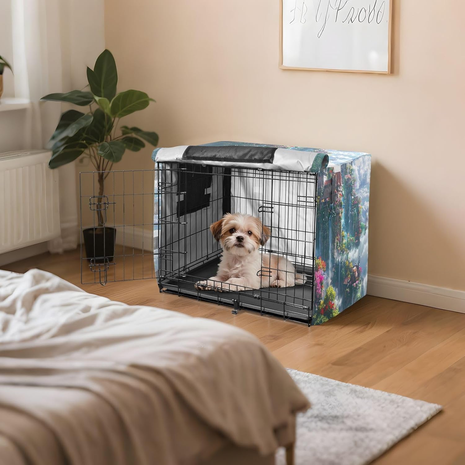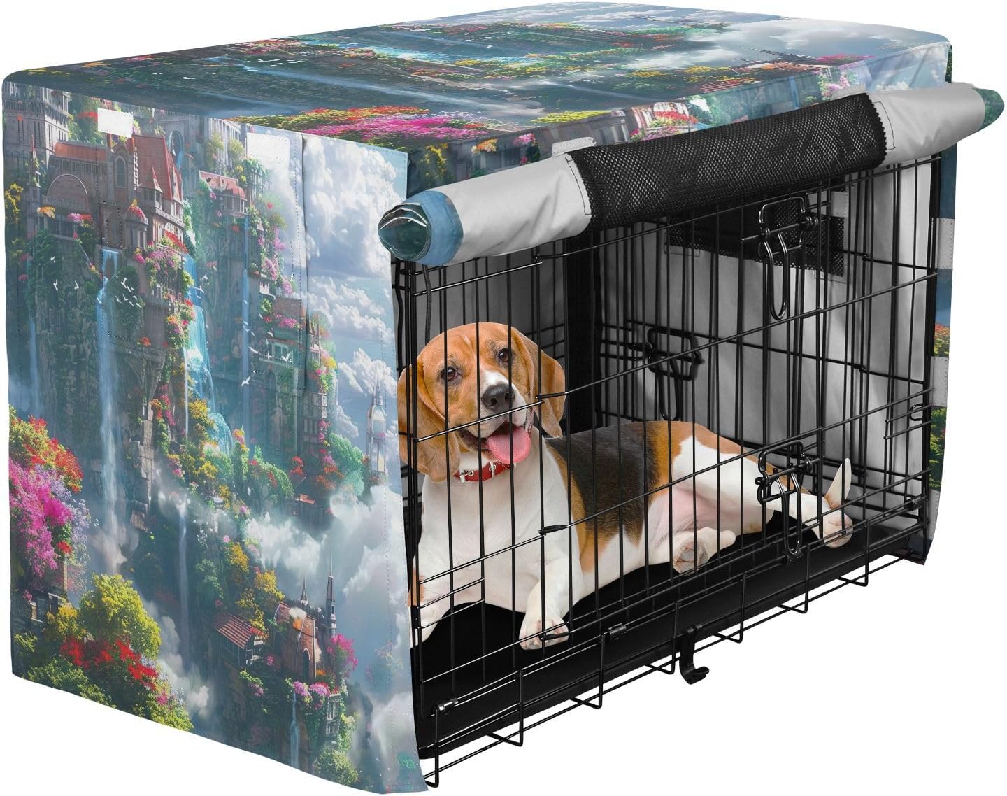 High-Quality Material – Crafted from 600D silver-coated oxford fabric, this breathable pet cage cover offers weather-resistant protection against rain, wind, and sunlight. It helps to keep your pet safe and comfortable, ensuring the crate remains in good condition.Fast and Easy Setup – The fastening system allows for a quick and straightforward installation process, making it ideal for pet owners who need an efficient solution for their dog crate cover.Breathable Design – With mesh windows on all sides, this breathable dog crate cover ensures consistent airflow, which helps keep your dog cool and comfortable while inside the crate. The breathable mesh also provides privacy and reduces stress.Sturdy and Wind-Resistant – Four tie-down straps securely fasten the cover to the crate, ensuring it remains stable even in windy conditions. This feature prevents the cover from being blown off or moved out of place.Convenient for Travel and Home – This versatile pet crate cover is designed for both home and travel use, providing a reliable solution for your pet's needs. Whether you're indoors or on the move, it offers excellent protection for your dog’s crate.