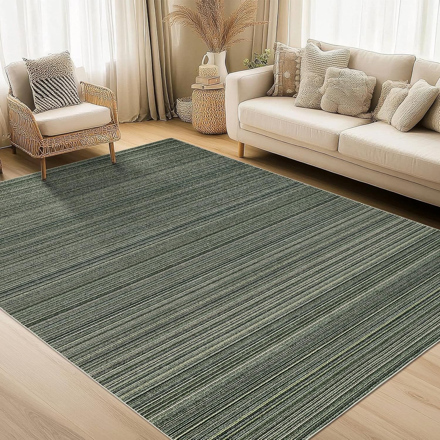 GarveeHome Area Rug 10x13 Washable Rugs for Living Room Bedroom, Modern Ombre Tonal Chic Design, Ultra Soft Carpet, Low Pile & Stain Resistant Contemporary Striped Abstract Foldable Floor Mats, Green