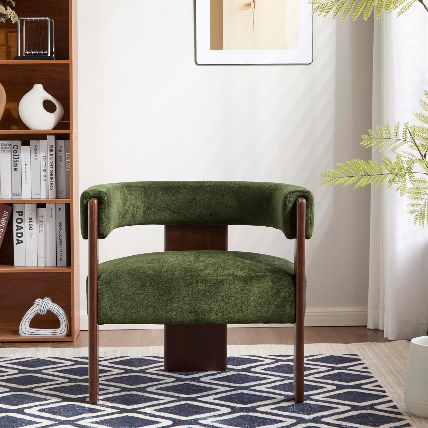 Upgrade your home décor with this modern accent chair, featuring a sleek barrel back design and luxurious boucle fabric. Supported by walnut-finished legs with scratch-resistant plastic feet, this chair blends elegance and functionality. Ideal for living rooms, studies, or cozy reading corners, it’s the perfect mix of comfort and contemporary style.