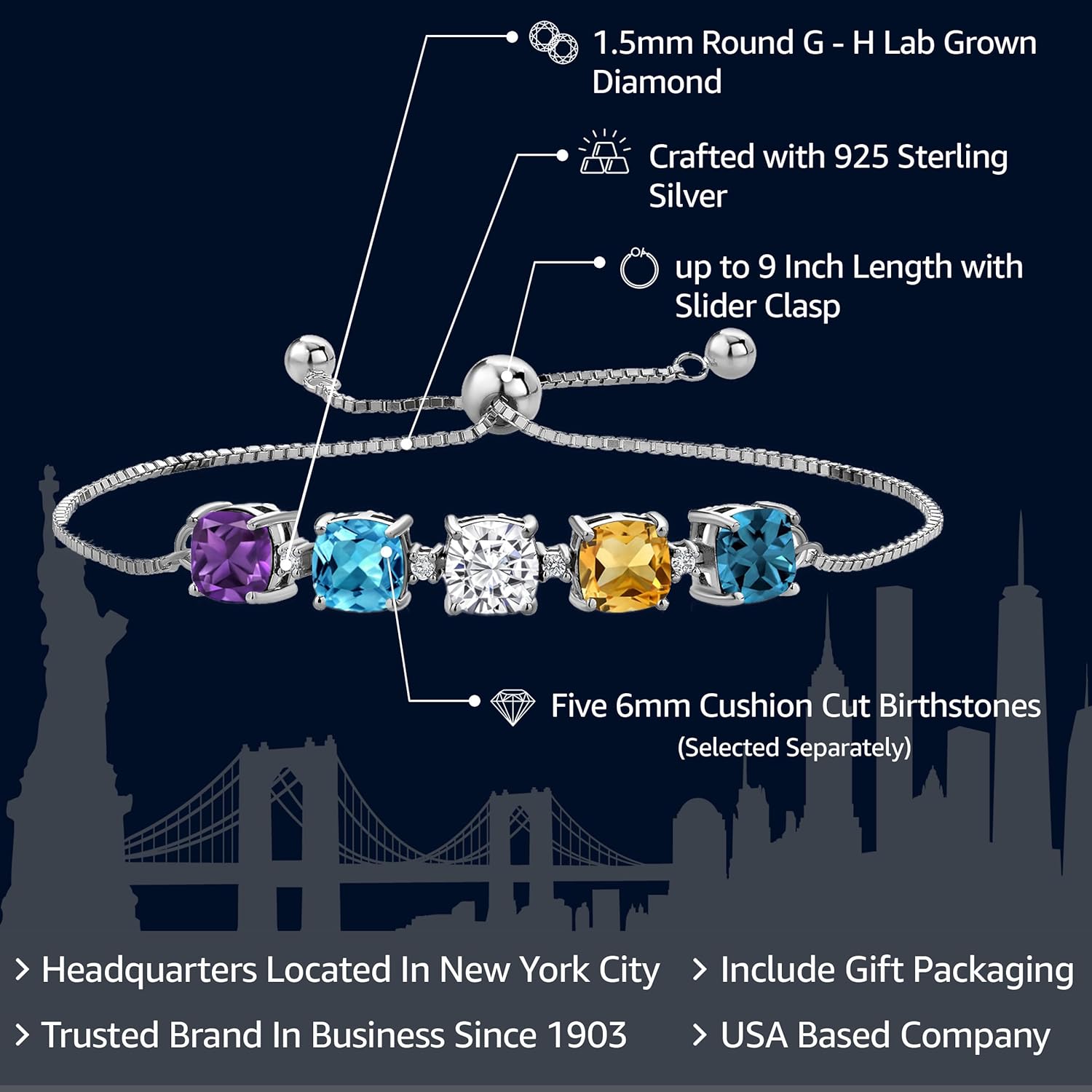 | Material | Gemstone, Lab Grown Diamond, Sterling Silver |