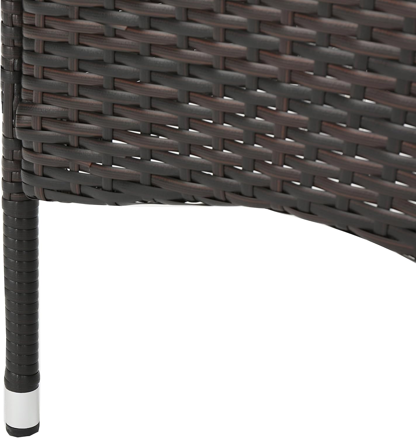 The Clementine Outdoor Brown Wicker Dining Chairs are made out of rich, brown PE wicker that will complement any nearby landscape. The all-weather wicker allows these chairs to last in any weather condition with little maintenance, and the water resistant cushions provide added comfort, and are easy to maintain. These sturdy chairs are also stylish and can be placed together or coordinated with any outdoor dining set.