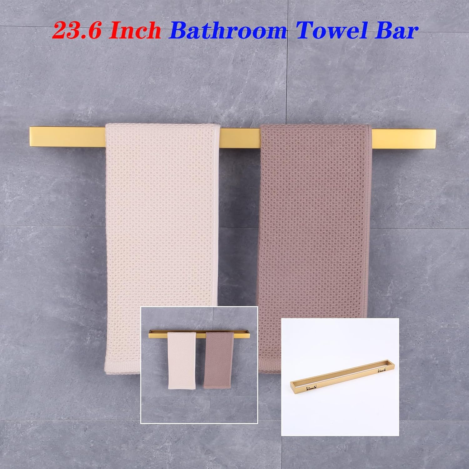 GERZWY 24-Inch Bathroom Towel Bar Stainless Steel Modern Square Style Bath Towel Bar Wall Mount Gold Finished HG1701(60)-BE