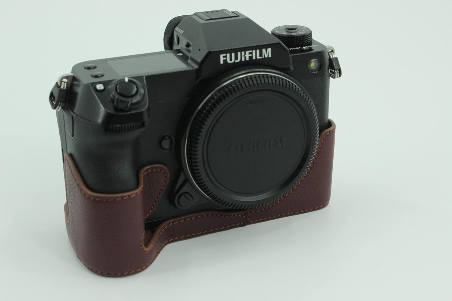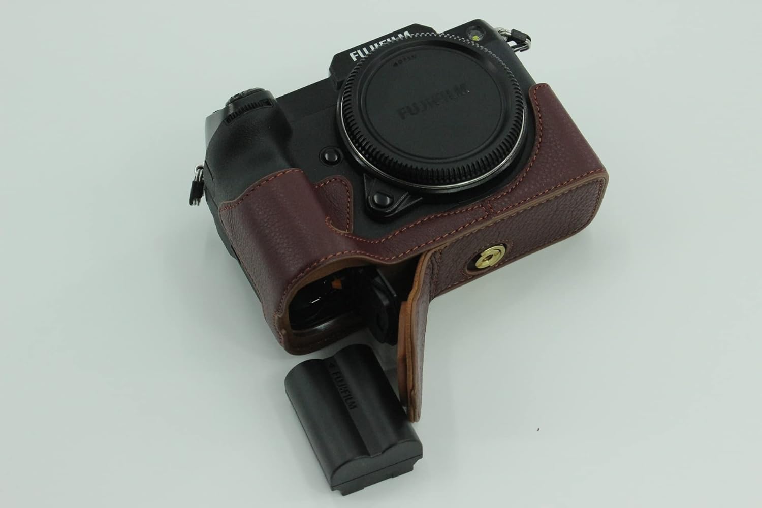It has a special design for Fujifilm Fuji GFX 50S II which makes it easy to turn over the Screen and it will totally not affect screen rotation. This camera is made by real top layer oil leather, the design is simple and vintage, use Metal sizing techniques make it very fit with the camera body. Inside lining use high lever velvet to protect camera body for scratch and coloration. 3.There is a opening on the bottom for battery, You don't need to take off the half case when you change battery. Under base screw is made by copper and it can easy take off by coin. You don't need to take off the half case when you use tripod. You don't need to take off the half case when you connect data lines. Content: 1 x camera half case, 1 x Free Genuine Real Leather Hand Strap, camera not included. Material:Genuine leather.