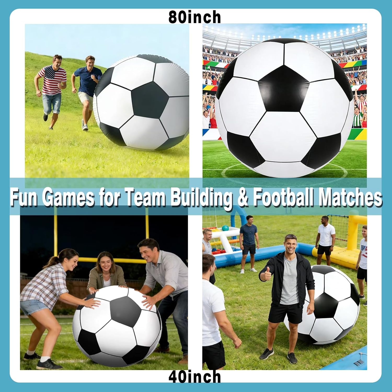 Elevate Your Outdoor Fun with Tademis! Why settle for a standard soccer ball when you can go BIG? Tademis offers two distinct sizes to fit your specific event needs: The 80-Inch Titan: This is the "Crowd Favorite." Perfect for music festivals, massive pool parties, and school spirit days. It’s an eye-catching decoration that doubles as a hilarious team-building tool. Standing taller than most adults, it creates instant "Wow" moments. The 40-Inch Sportster: The ideal balance between "Jumbo" and "Playable." Perfect for backyard games, kids' birthday parties, and beach volleyball-style play. It's large enough to be exciting but light enough for children to kick and throw safely. Quality You Can Trust: Whether you choose the 40" or the 80", you get the same puncture-resistant, eco-friendly PVC material. Our goal is to provide a safe, durable, and unforgettable experience for your family and friends.