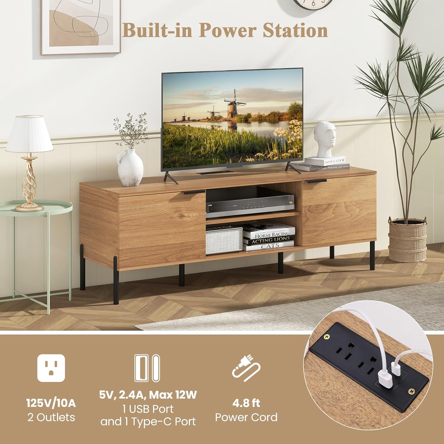 Built-in with 2 power outlets, 1 USB port, and 1 Type-C port along with a long power cord, the TV stand makes charging devices effortlessly accessible. Moreover, it is perfect for keeping gadgets powered while enjoying your favorite shows.