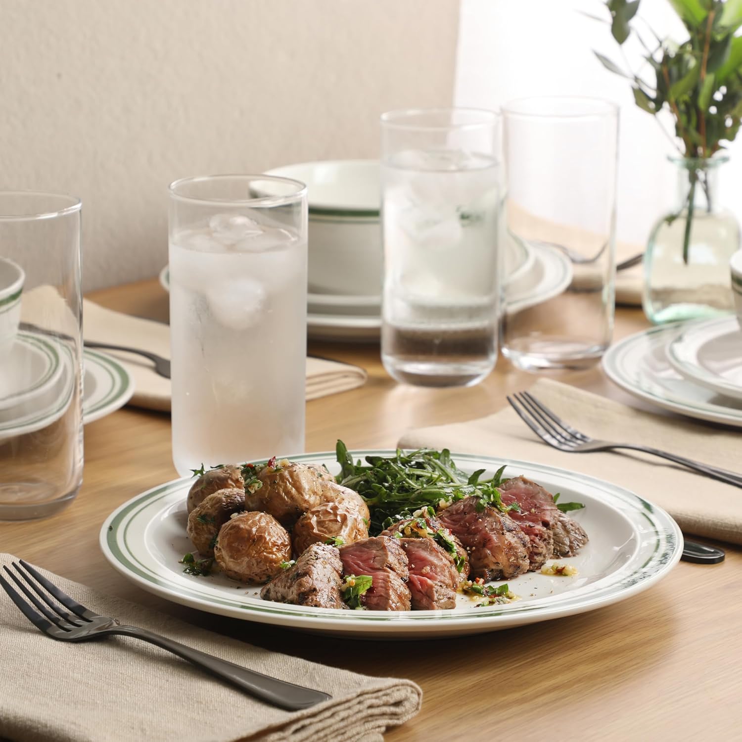 Flash back to the golden age of diners with the Hometown Diner 12-Piece Porcelain Dinnerware Set from Gibson Home. Bold green-banded edges and durable porcelain capture the spirit of a ’60s American diner, making every meal—from pancakes to homemade dinner—feel like a fun and retro mealtime. With a touch of elegance and plenty of nostalgia, each plate and bowl transports you back to special moments spent at your friendly neighborhood diner with Pops and Gammy, your family and your buddies. An all-time classic, the Hometown Diner 12-Piece Porcelain Dinnerware Set lets you recreate that iconic diner experience right at home. Dishwasher and microwave safe. Make every home a Gibson Home. A multi-category collection of kitchen and dining essentials, Gibson Home offers style and value for everyday living. Enjoy preparing, cooking, and serving delicious meals in a wide selection of dinnerware, cookware, bakeware, cutlery, glassware, and more. Designed with function, reliability, and versatility, Gibson Home provides dining and entertaining staple to make every mealtime or gathering a culinary success.