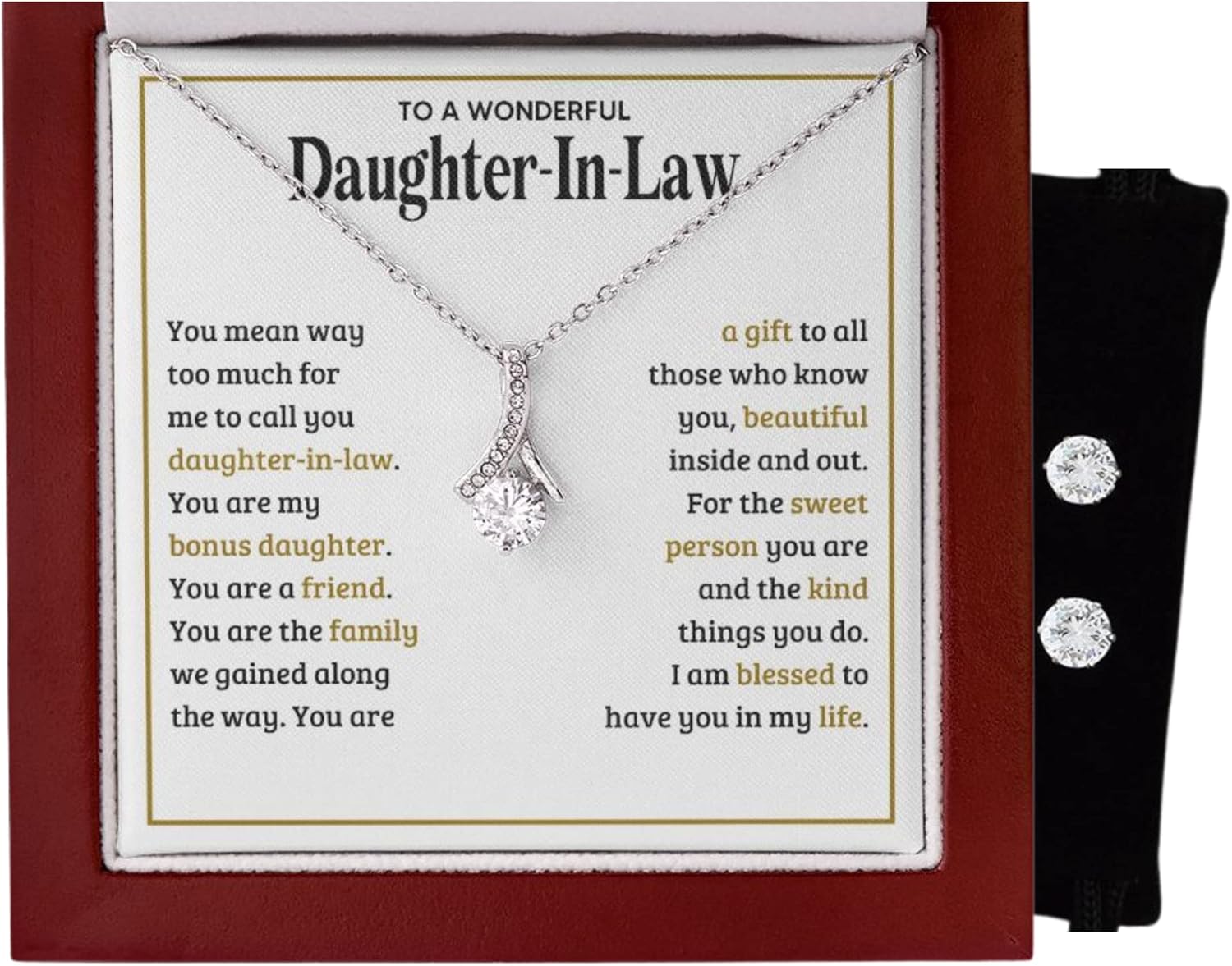 Imagine her reaction receiving this beautiful Love Knot Necklace. Representing an unbreakable bond between two souls, this piece features a beautiful pendant embellished with premium cubic zirconia crystals. Surprise your loved one with this gorgeous gift today! 14k white gold over stainless steel or 18k yellow gold over stainless steel 6mm round cut cubic zirconia stone Pendant dimensions: 0.6" (15.7mm) height / 0.23" (6mm) width Adjustable chain length: 18" - 22" (45.72cm - 55.88cm) Lobster clasp attachment Your piece is lovingly packaged in a complimentary soft touch box for easy gifting. Elevate your presentation by upgrading to the mahogany style luxury box, which features a brilliant LED spotlight.