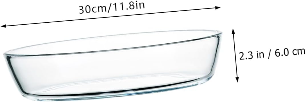 Package List 1 x serving plate Features - Color: Transparent Baking Pan - Size: 30.00X21.00X6.00cm/11.79X8.25X2.36in Glass Baking Dish - Material: Glass Oval Dish - It is fired at high temperature, with simple style, suitable for oven, dishwasher, microwave oven etc Kitchen Supplies. - Can be stacked the cupboard making them a great space saver Salad - Made by sturdy glass materials, and for long-lasting use Steak Tray. - , , heat , , a helper of your kitchen Glass Pan. - Widely used in daily life, suitable for holding family gatherings, birthday parties, etc Serving Goods InformationMicrowave Plate The ergonomic arc-shaped edges design makes you easier and safer to hold the platters.Steak Tray Large serving plate formed an appropriate space that can hold or juicy food no more worry about spilling when you move it around
