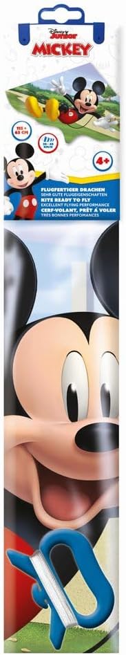 Mickey Mouse arrives The single-line kite has been specially developed for children aged 4 and over. With its sail made of robust PE film, it shows very good flight characteristics and flies even in light wind. The ready to fly kite comes complete with winding handle and cord.