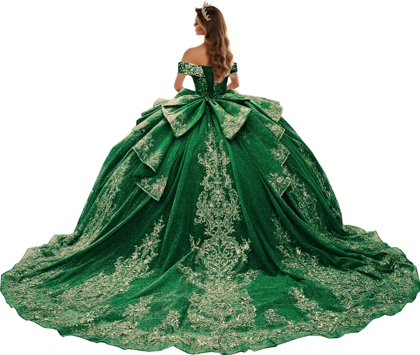 • Features: Puffy quinceanera dresses Sage with long train,off shoulder ball gown with big bow,glitter beaded sweet 16 dresses with diamonds,sparkly gold appliques sweet 15 birthday dress.