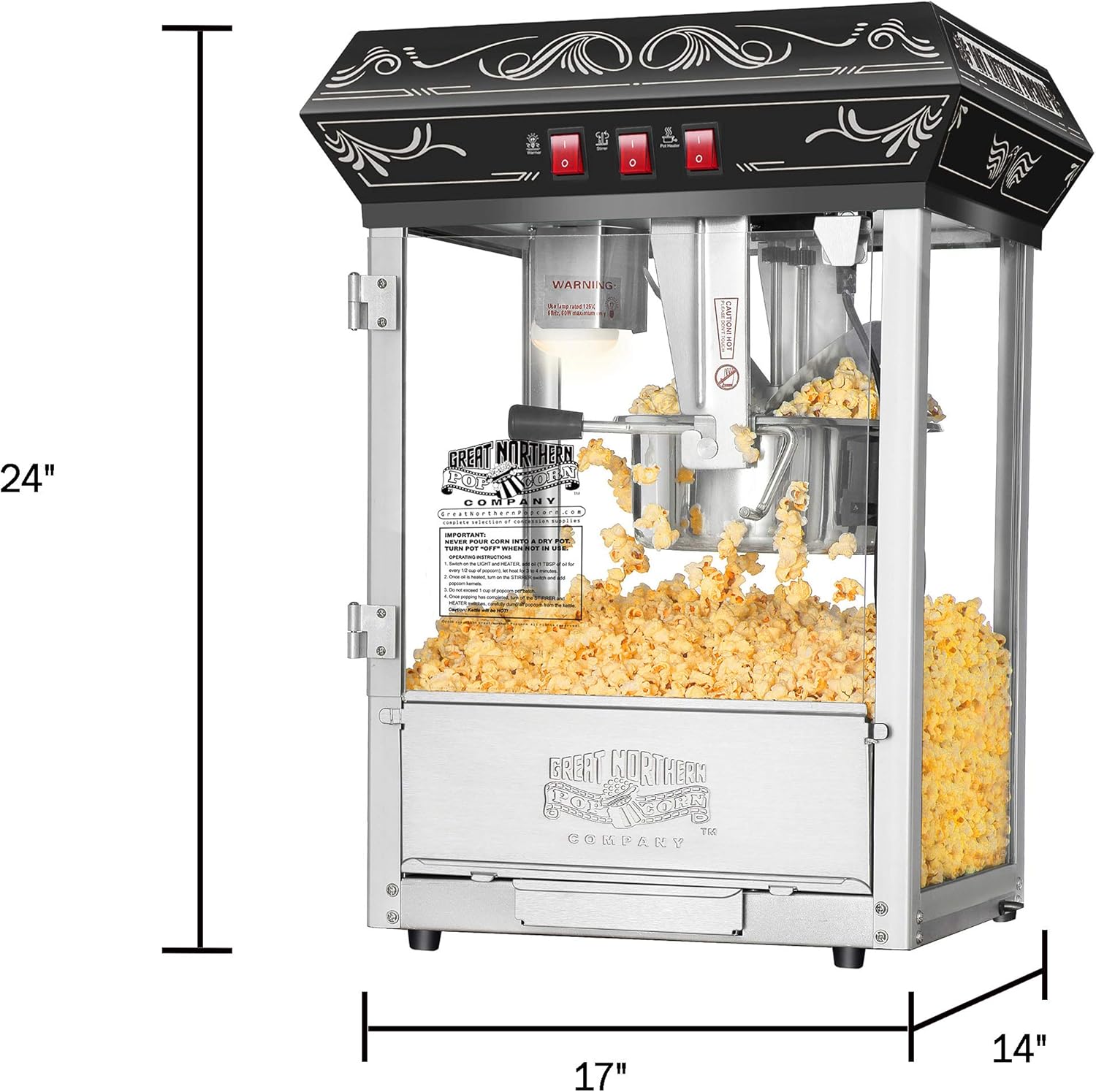 Bring movie theater style popcorn to your home, office, or business with the Good Time Popcorn Machine by Great Northern Popcorn. The vintage style popcorn maker includes an 8-ounce stainless-steel kettle that makes about 3-gallons of movie theater popcorn, a heated deck to preserve your delicious snack's freshness, and a convenient old maids drawer that collects the reject kernels for easy cleanup. Enhance your movie theater decor with the timeless vintage design of this tabletop popcorn popper. This home theater popcorn machine is a fun and nostalgic piece that is sure to please everyone at movie night, birthday parties, or sporting events. IMPORTANT: Great Northern Popcorn is committed to providing the consumer with the absolute best price and value on our entire line of products. NOTE: This is an exclusive product of Great Northern Popcorn and ONLY Popcorn Machines by Great Northern Popcorn are GUARANTEED to be genuine. Avoid buying counterfeit products and transacting with unauthorized sellers.