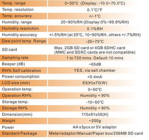 Desktop Dew Point Monitor Humidity Temperature Meter WBGT Tester SD Card Datalogger; Simultaneously displays temperature and humidity; Advanced SD card logging design for continuous recording; Easy-to-read super big LCD display; Check humidity condense conditions through dew point; Programmable danger zone for warning purpose; Designed with capacitance type humidity sensor to get accurate and quick reading