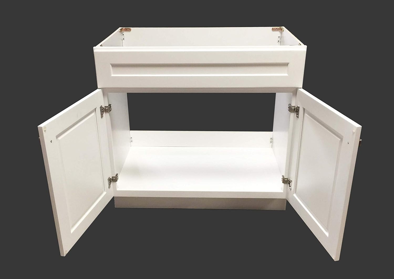 white shaker wood species : Russian birch Frame: 3/4" Solid birch Door : solid birch door frame and veneered door panel Door Style: shaker Overlay: full overlay Construction 1/2 " plywood with birch Veneer Hinges : Frameless Cabinet Hinges Drawer Box 5/8" rubber wood dovetail , natural finish Drawer Glide : under mount soft close glide Door Finish : White Box Finish : interior and exterior match color of face front
