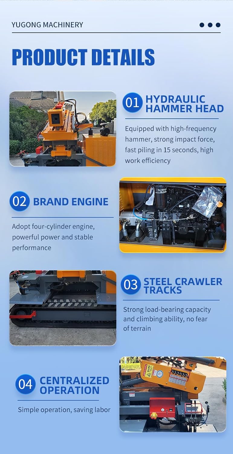 This Guardrail Pile Driver is built for professional contractors working on foundation construction and infrastructure projects. With strong hydraulic power and rugged structure, it delivers dependable performance for driving foundation piles and guardrail posts in road and civil construction work.