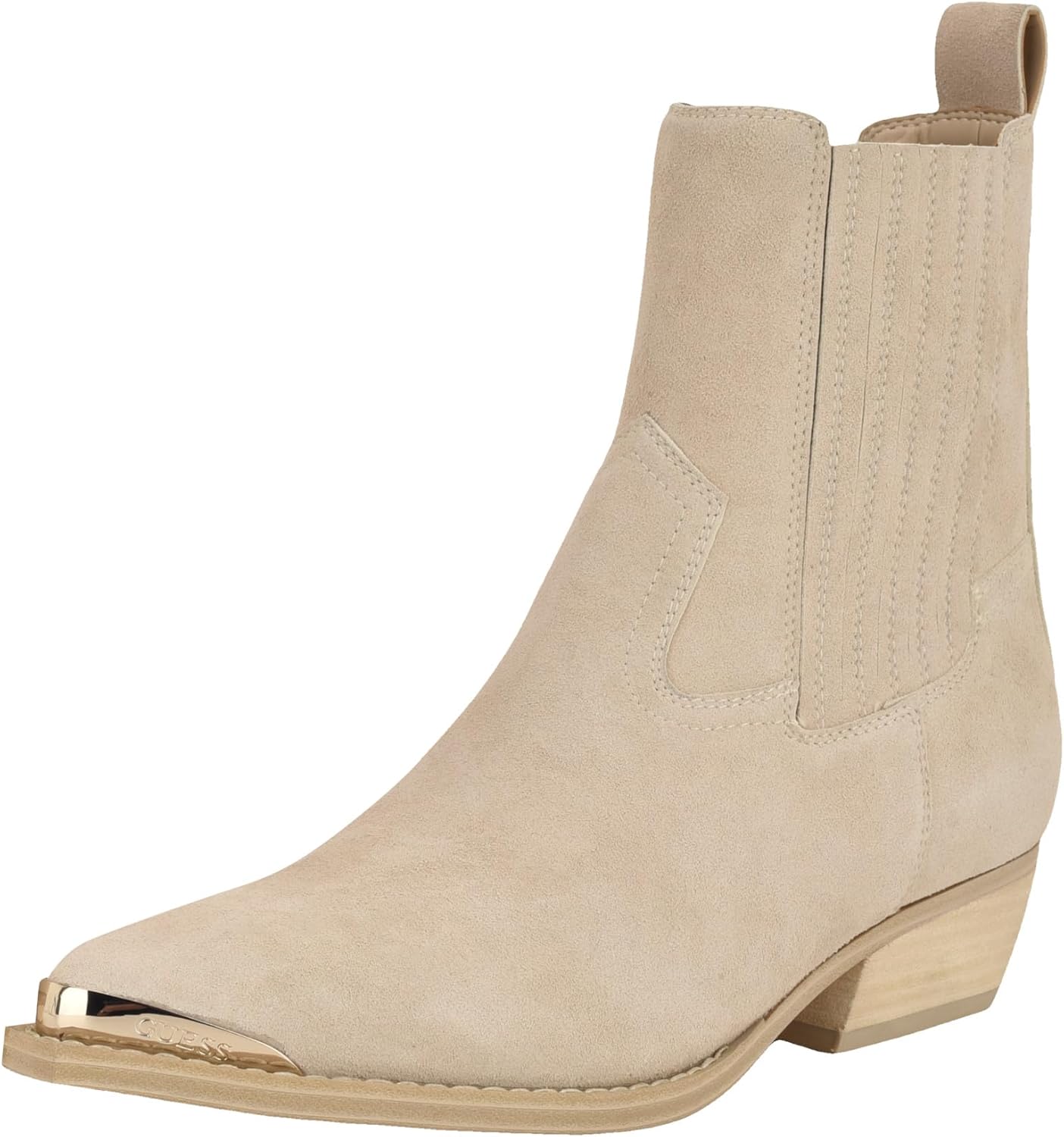 Add a touch of western to your wardrobe wearing the Guess Lanna. This suede boot features a pull tab on the back, accented with a metal toe rand adding an extra touch to this easy to wear style. Est. 1981, Guess is a global lifestyle brand and a symbol of a young, adventurous lifestyle.