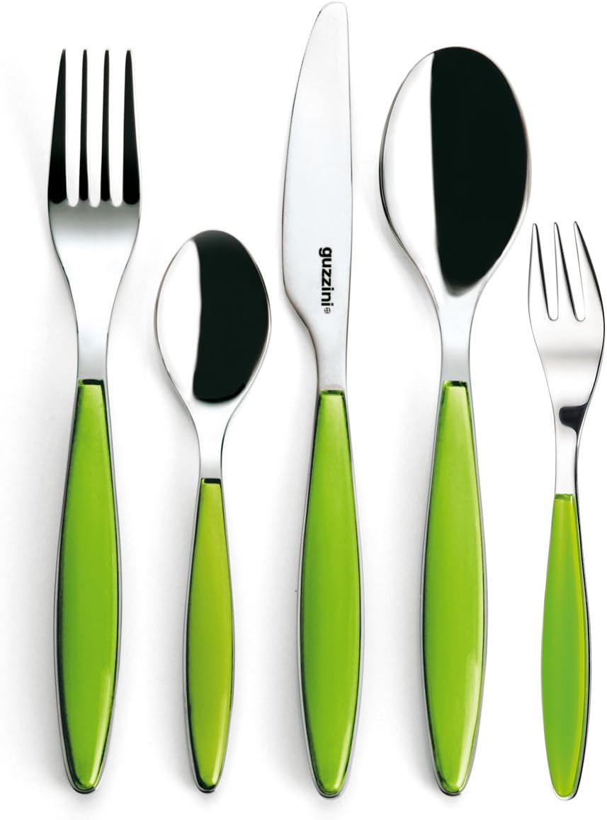 Founded in 1912, Fratelli Guzzini introduced Plexiglas to the domestic landscape in 1938, at a time when household objects were still strongly tied to the more traditional materials of wood, glass and iron. Continuous innovation in the following decades led to the development of the Guzzini style. With an exciting approach to color and materials, Guzzini plays a large part in what the world recognizes as the Italian look. Guzzini is still a family-run business, and is one of the leading designers and manufacturers of kitchenware. The best names in international design choose to work with Guzzini due to the company's ability to combine quality and beauty. Guzinni has received the prestigious Compasso d'Oro award in recognition of the company's commitment to design. The very successful Feeling cutlery range is stylish and beautifully-made. The production standards are well above those of other 'fashion' cutlery sets and feature dishwasher-safe plastic that is molded through holes in the steel handle. This makes the cutlery extremely robust. Feeling was designed by Robin Levien - one of Britain's most successful international designers.