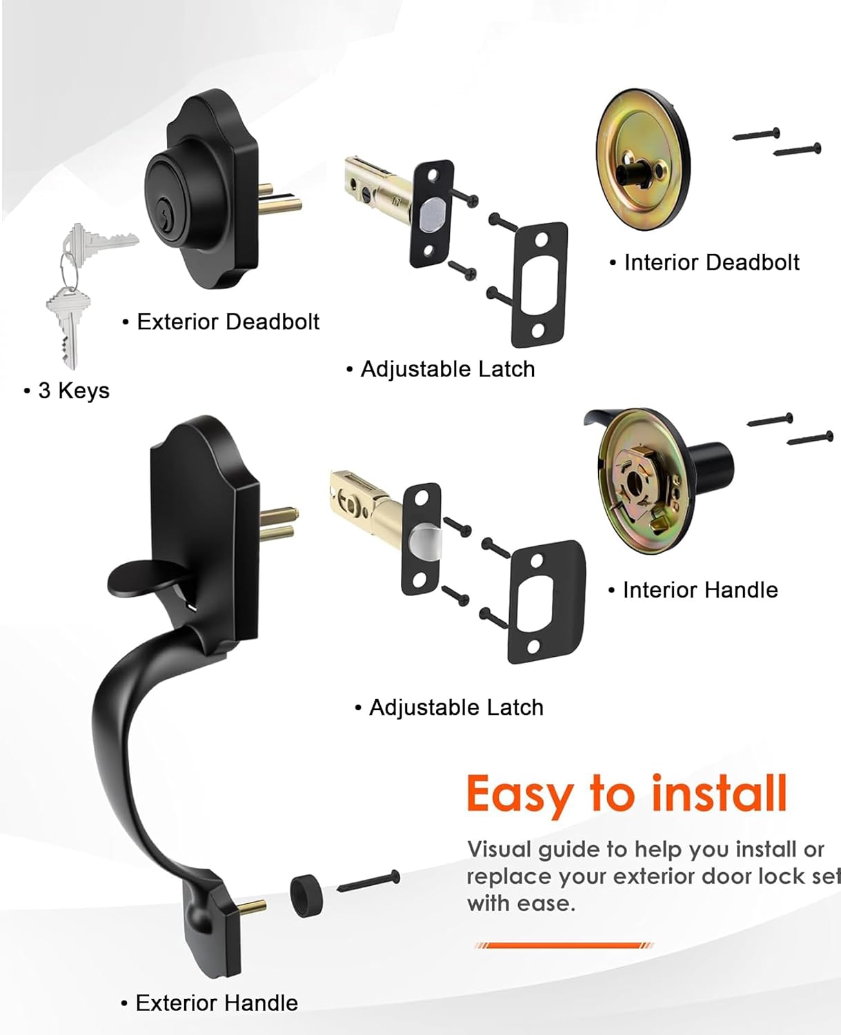| Included Components | Deadbolt, 2 door handles, levers, adjustable latch bolt sets, 3 keys, installation instruction |