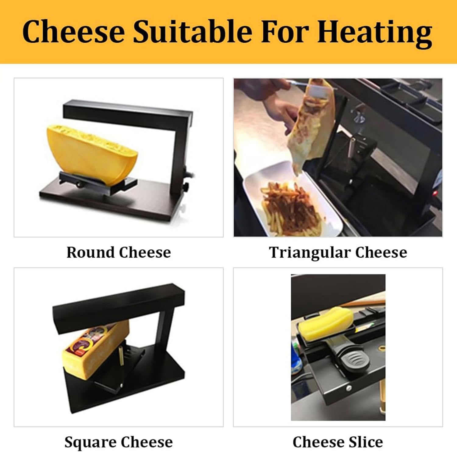 Elevate your culinary experience with this semi-automatic cheese wheel maker. As a premium commercial cheese melter, it features an advanced electric design crafted to meet the versatile demands of restaurants and kitchens. Equipped with a single heating zone, this machine swiftly melts cheese in just 40 seconds, making it ideally suited for traditional Western cuisine Specifications: Name: Half Cheese Wheel Maker Power: 650W Product Size: 40*11*56cm Cheese Holder: 23*9cm Heating Area: 36*9cm Material: Alloy steel, plastic Rated voltage (appliances or chargers): AC110-240/50HZ;
