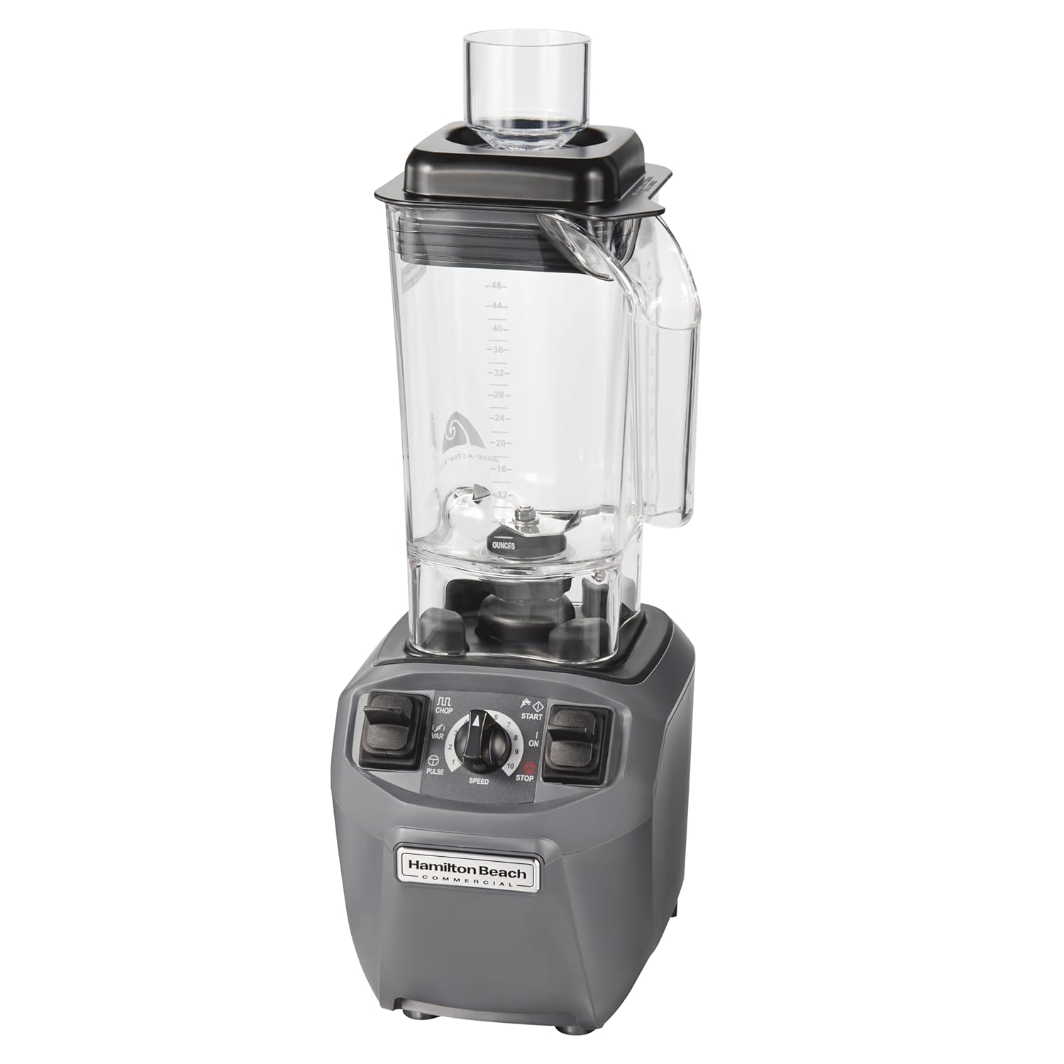 The powerful 2.5 peak* Hp motor of the EXPEDITOR 510 culinary blender lets chefs blend ingredients quickly and optimizes blending consistency. Its blade design and jar shape help chefs create silky purees, creamy soups and signature drizzles to power through ingredients quickly and reduce prep time. An adjustable variable speed dial, pulse and CHOP provide complete blending control. Integrated 4 oz / 118 ml dosing cup makes adding liquids for emulsions easy. Backed by Hamilton Beach Commercial with a 2 year limited warranty for parts and labor. Available in 120V and 230V. NSF certified and CE approved. *input power.