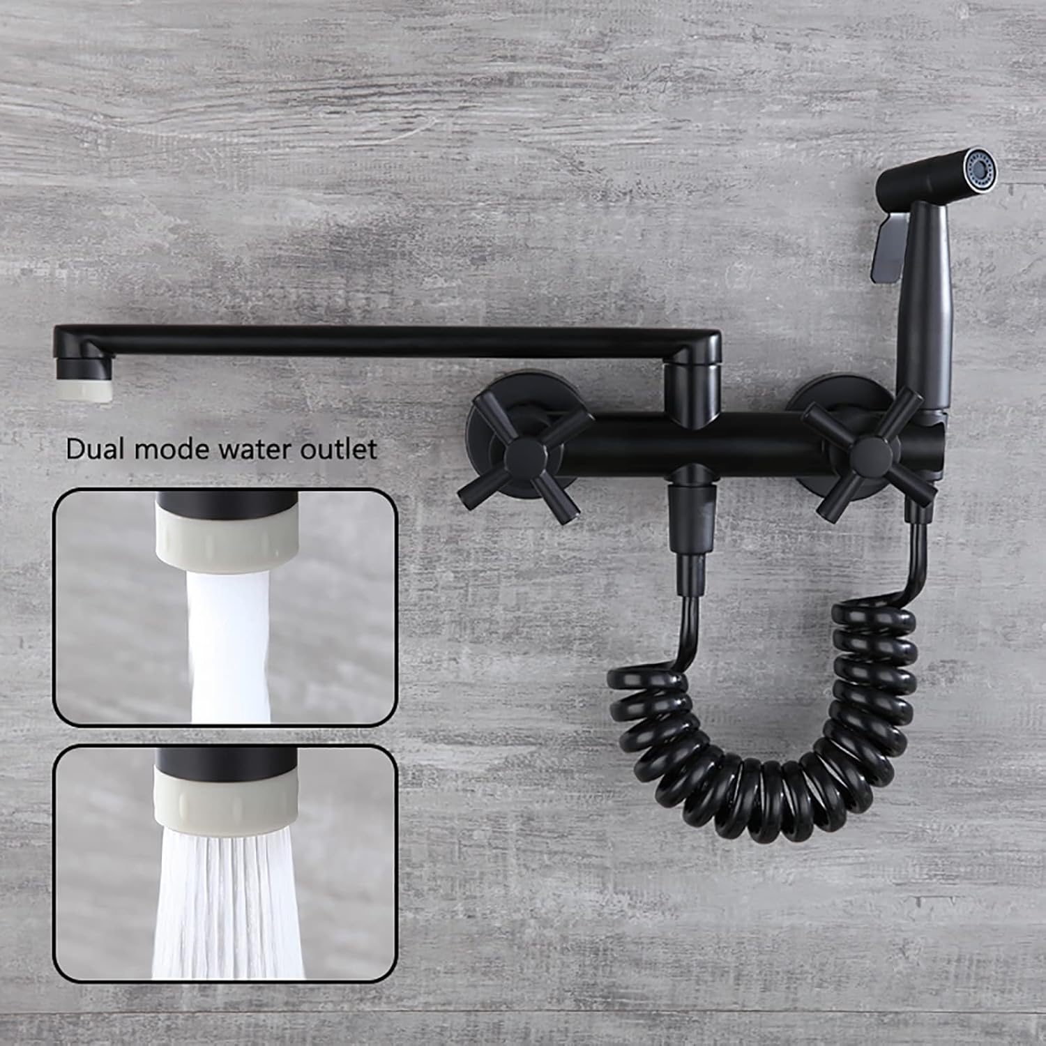 ★ Great for bathing pets, cleaning diapers, or feminine hygiene★ Incremental pressure system lets you spray as gently as needed★ Can be used to help you clean the bathroomSpecification:Product Name: Bidet Sprayer for ToiletStyle: ContemporaryColor: Black/ ChromeFeatures 1: 180° rotationFeatures 2: 2 mode water outletInstallation Type: Wall mountHot & Cold Water: YesCold/ Hot Water Control Type: Dual Holder Dual ControlNumber of Handles: Double handleInstallation Holes: 2 holeInstallation Hole Distance: 15cm (13.5-16.5 cm, adjustable)Shower Hose: 1.5mConnection: G1/2"Material:Faucet Body Material: BrassHandheld Sprayer Head Material: 304 Stainless SteelShower Hose Material: PVC● Package Included: 1 x Faucet Body1 x Bidet Sprayer Head1 x Shower HoseWarm Tips★ Rinse the debris in the pre-embedded water pipe before installation to avoid clogging the faucet and internal piping.★ Since the size is measured manually, there is a 1-3 mm error. Please refer to the actual product.★ The picture is the actual product. However, slight chromatic aberrations may occur due to different lighting and display settings.
