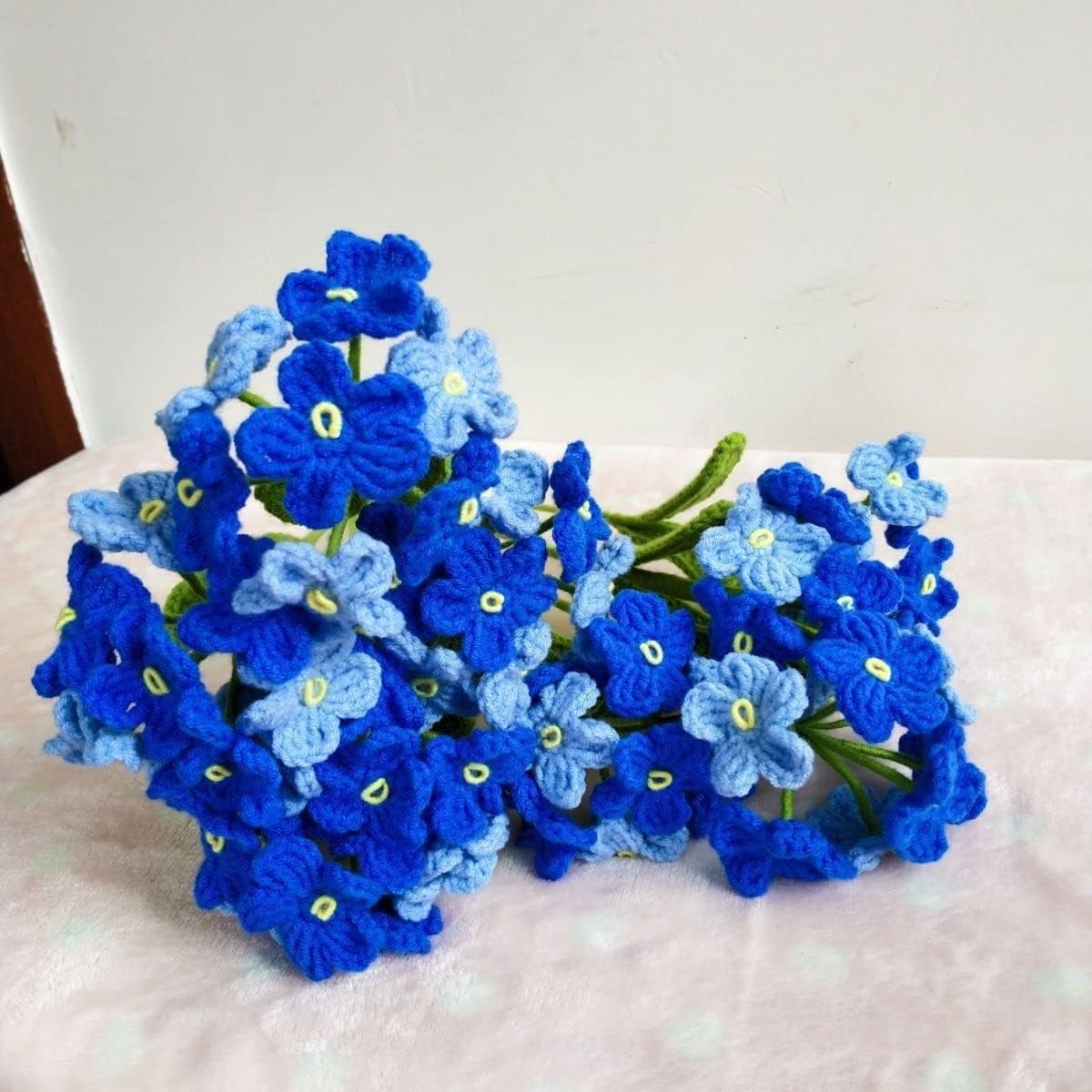 Handmade crochet artificial flowers have no smell and are friendly to people with allergies. The posture of these fake plants can be adjusted at will. Leaves and flowers can be squeezed due to packaging and transportation. You can adjust the appearance of Forget-Me-not when you receive it. Great Gift A gift for girlfriend, mother and friends for Valentine's Day, Mother's Day, graduation, birthday party, anniversary and hone decoration.Size: 14.6x3.1x3.1inch
