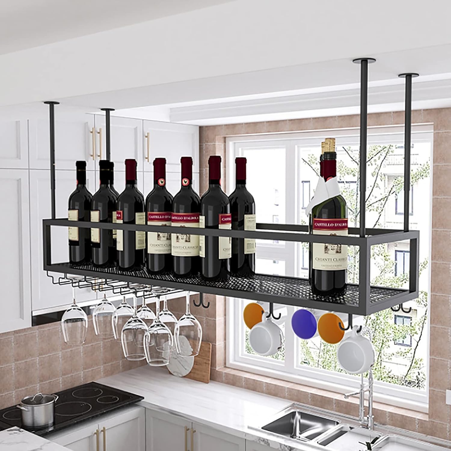The ceiling Storage Rack is very suitable for decorating all kinds of messy rooms. It has large storage space and is very practical. It is a must-have decoration for every room.Wide Application-It can be used as a wall decoration in kitchens, restaurants, food storage rooms, wine cellars and bars. The ceiling wine rack is suitable as a birthday, anniversary, Christmas and New Year gift for family or friends.