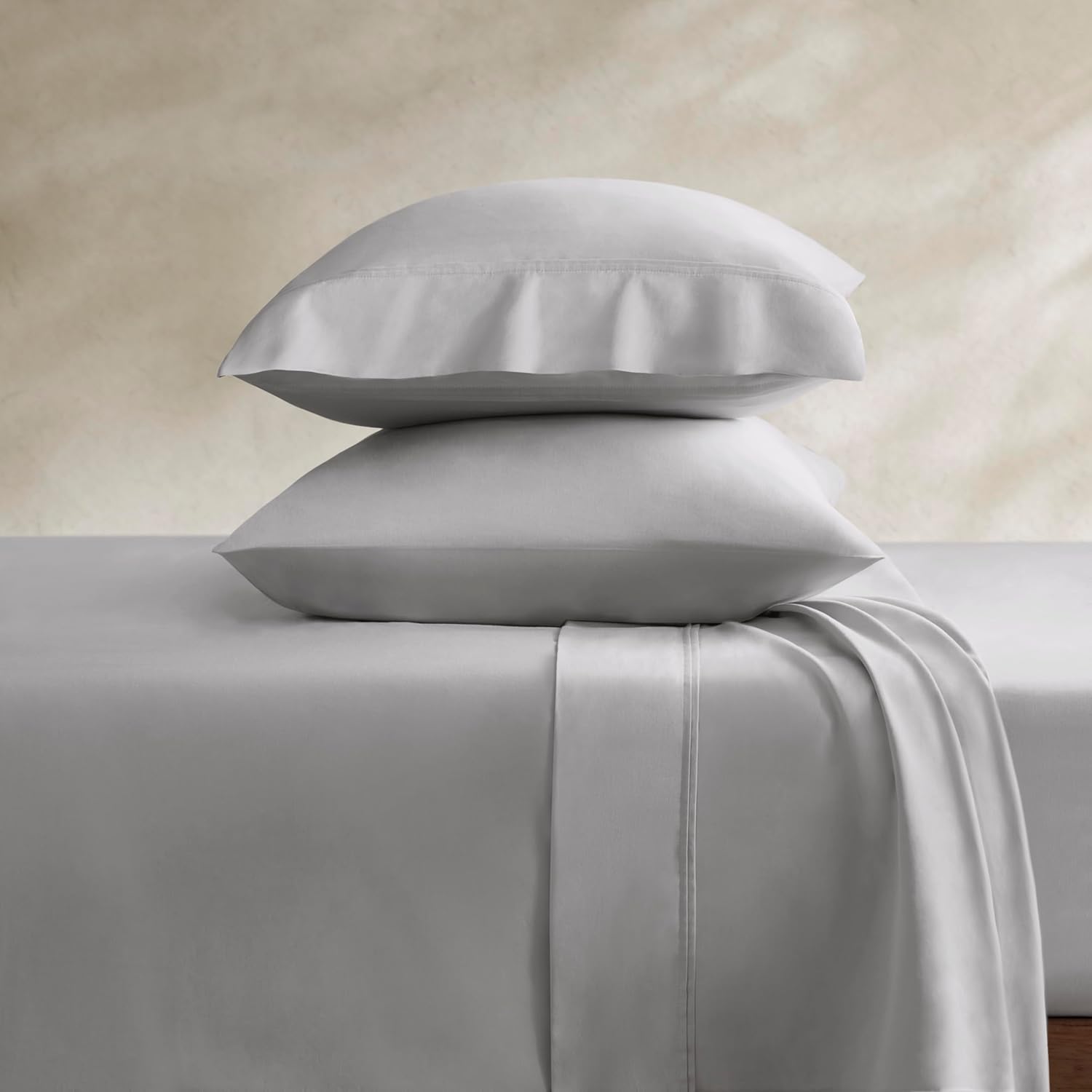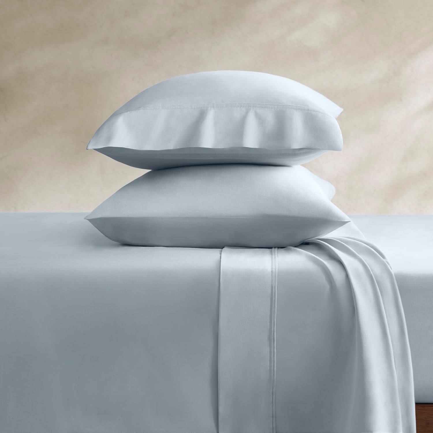 Developed to enhance sleep quality and soothe the senses, this sheet set is woven from premium long-staple Egyptian cotton for exceptional breathability. 400TC offers the ideal density for bedding, delivering a perfect balance of softness and structure for year round comfort. The luxury sateen weave adds a cool, silky finish that feels smooth and gentle against the skin. Subtle 1/4" piping adds a refined detail, while the deep pocket fitted sheet fits mattresses up to16" Made from certified 100% Egyptian cotton from the Nile River Valley and independently tested to meet OEKO-TEX® Standard 100, the fabric is both luxuriously soft and safe for even the most sensitive skin.