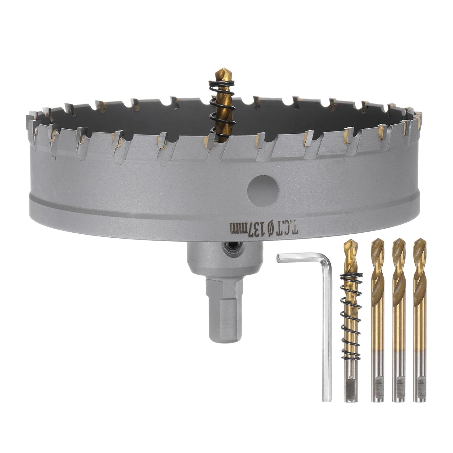 1. Carbide hole saw kit can cut to a depth of 25mm. The package includes a metal hole saw, 5 center drills, 2 springs, and a wrench.2. The carbide hole cutter head is made of carbide, high in hardness, durable, and wear-resistant. The three-layer cutting-edge design drills quickly and smoothly, providing efficient cutting performance on various materials.3. The metal hole saw kit can be installed on hand drills, impact drills, bench drills, and CNC drill machines and can cut materials such as stainless steel, mild steel, copper, iron, fiberglass, aluminum, wood, and plastic.4. Widely used in industrial plants, home renovations, car repairs, and DIY requires a durable hole saw for precise cutting of high-quality stainless steel.5. The metal material being cut must be clamped firmly to prevent movement or vibration during the cutting process to ensure an accurate cutting position.