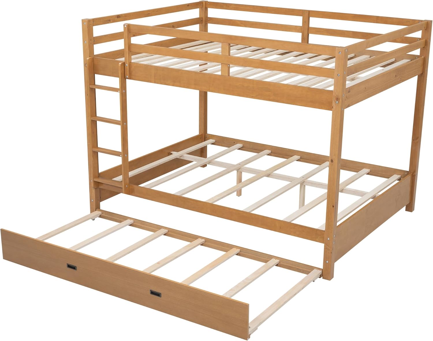 Maximize your room’s potential with this sleek and sturdy wood bunk bed queen size!★Designed with both style and function in mind, this queen bunk bed features a solid pine wood and MDF construction that ensures durability and support for years to come. Its modern, clean lines fit effortlessly into any decor, from kids’ rooms to guest suites.★The upper bunk features protective guardrails for added safety, while the angled bunk bed with ladder is stable and easy to climb. This kids bunk bed doesn’t require a box spring—wooden slats provide strong mattress support. Whether you're looking for a bunk bed frame for teens or a space-efficient solution for a small room, this queen-size wood bunk bed is the ideal blend of comfort and practicality.Material: Pine Wood+MDFSize: QueenColor: NaturalNumbers of Package: 2Spring Box: No needAssembly Required: YesOverall Product Dimension: 85.4''L x 64.2''W x 63''HQueen Bed: 82.3'' x 61''Trundle Bed: 80.3'' x 39.3''Total Height: 63''Recommend Mattress Thickness of Bed: (Upper/Down)6''/8-10''Overall Product Weight: 206lbsBed Weight Capacity: 600lbs