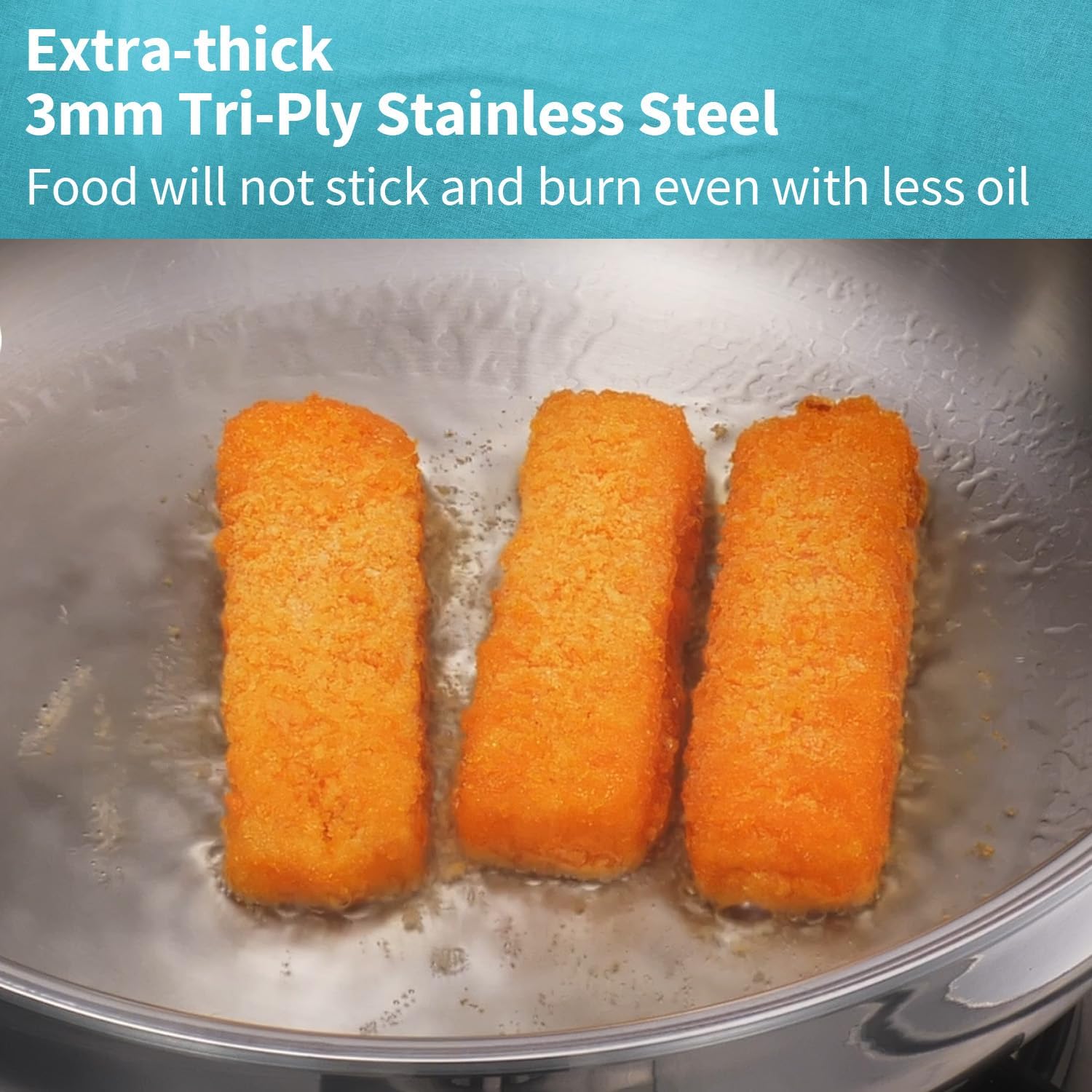 Hawkins Pro Triply Stainless Steel Frying Pan is engineered for professional-grade cooking performance, delivering exceptional results with every meal. Designed with comfort in mind, the stay-cool handle ensures a secure grip and comfortable handling, even when the pan is hot. With its premium construction, this frying pan prevents food from sticking and burning, even with minimal oil, thanks to its robust tri-ply stainless steel build. From gas stoves to induction cooktops and even the oven, this pan is versatile enough to adapt to various cooking methods. Built to last, the stainless steel rivets ensure that the pan remains sturdy and secure over time, eliminating concerns about loosening or instability. Enjoy hassle-free cleanup with this frying pan, as it's dishwasher safe.