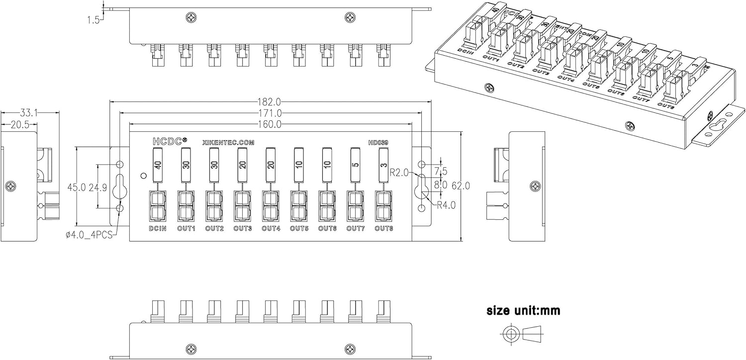 HCDC 1 in 8 Out 40Amp Connector Power Splitter Distributor Source Strip Module